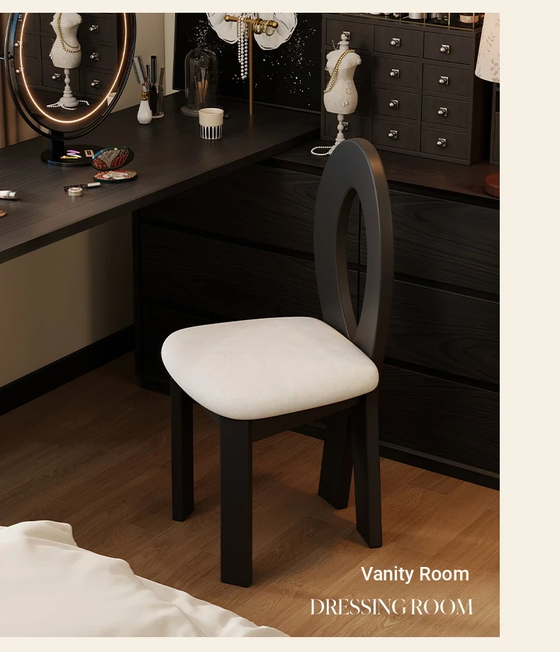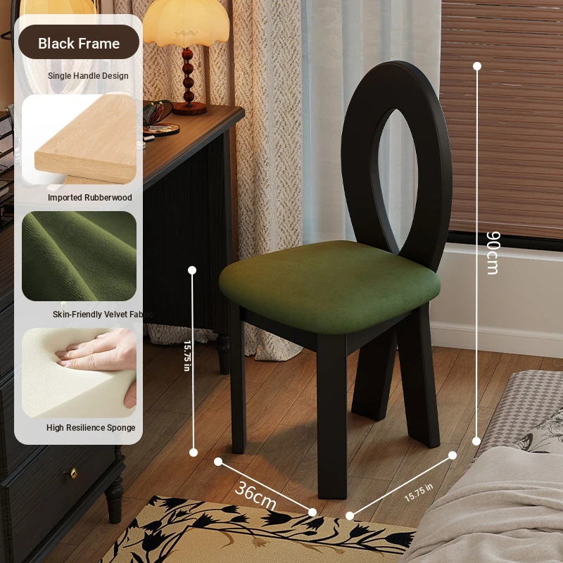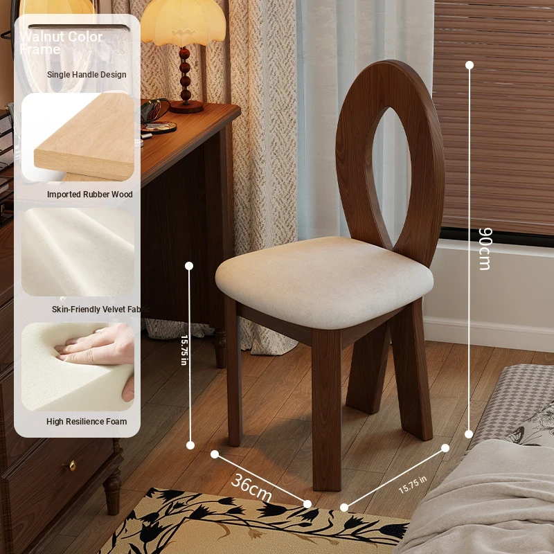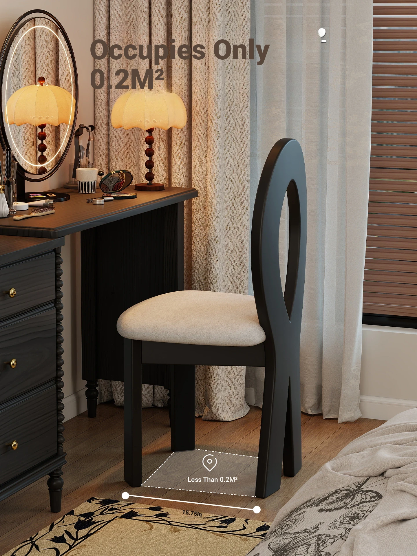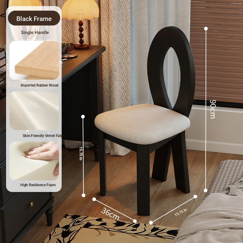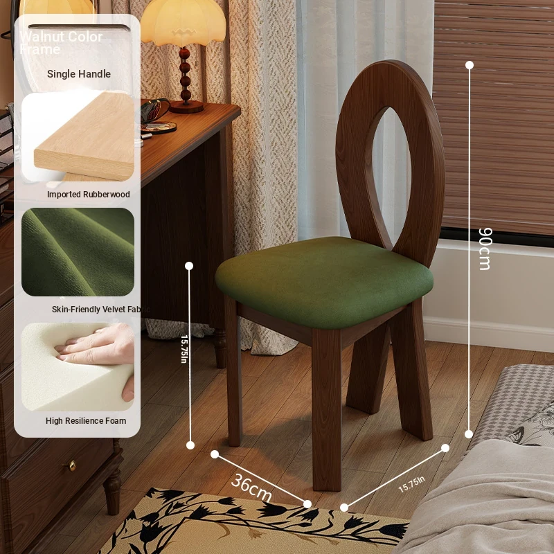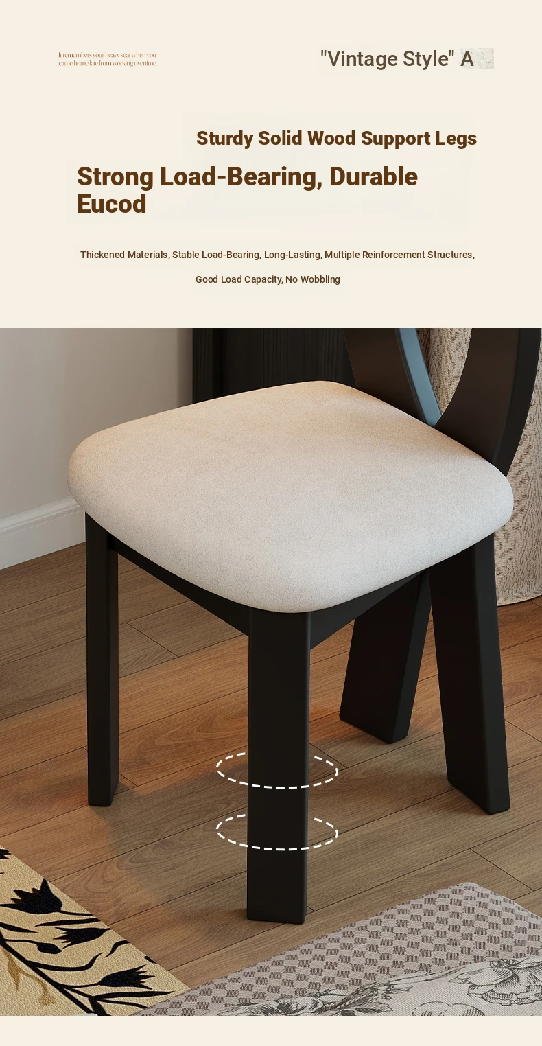 Vintage Solid Wood Makeup Stool - Elegant Bedroom Vanity Chair in French Style, Ideal for Small Spaces - Mermaid-Inspired Design for a Chic Touch