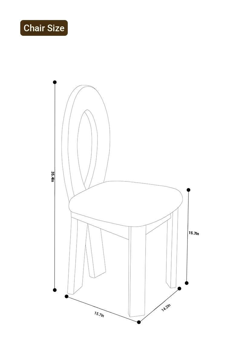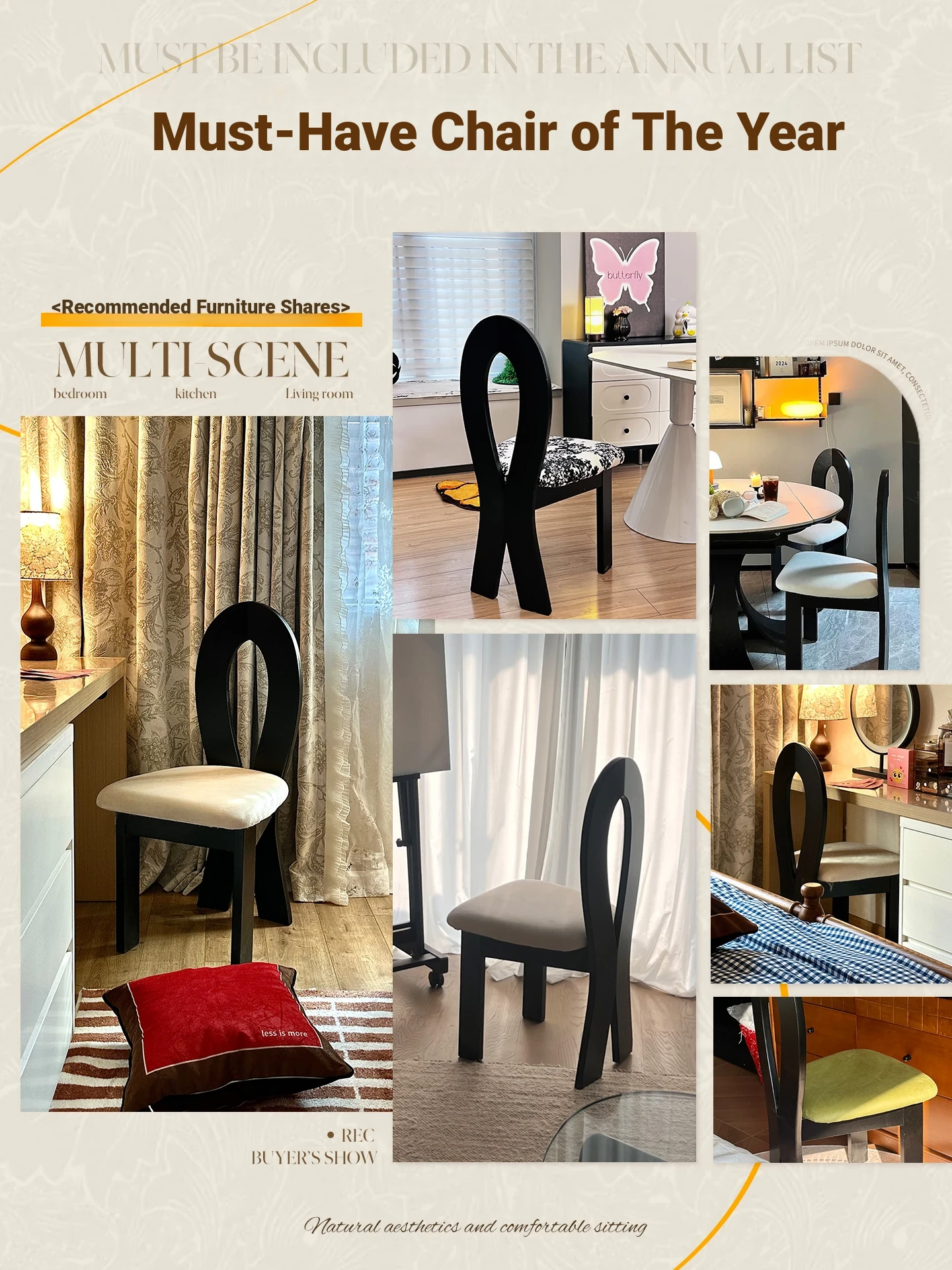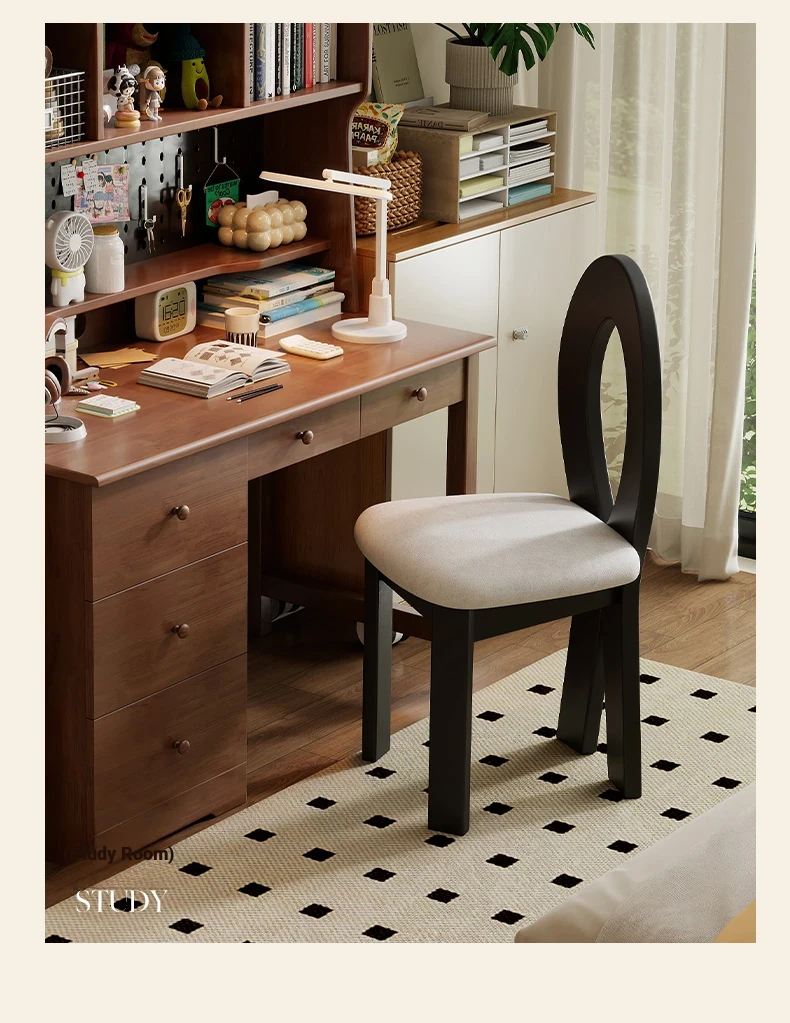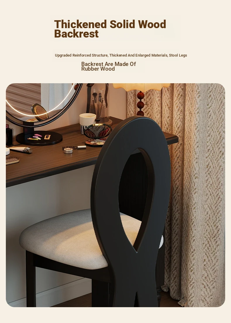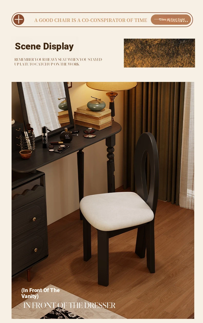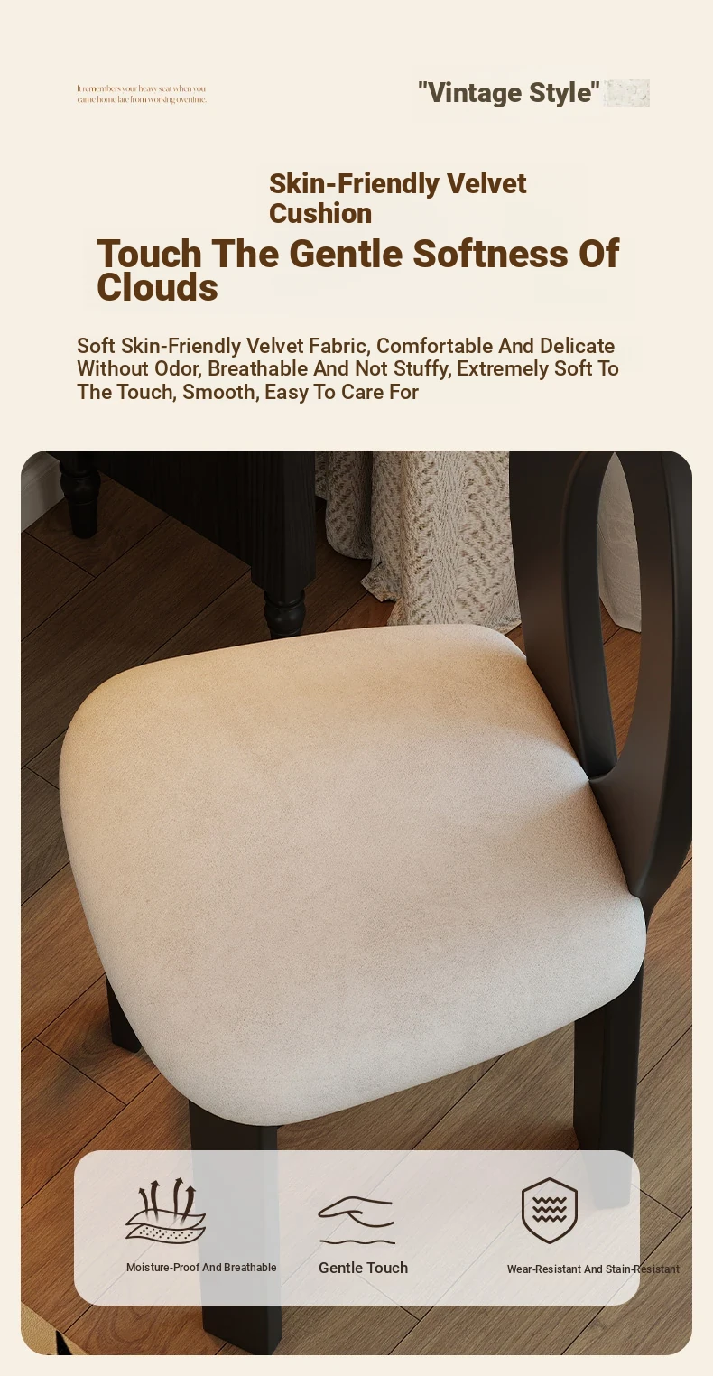 Vintage Solid Wood Makeup Stool - Elegant Bedroom Vanity Chair in French Style, Ideal for Small Spaces - Mermaid-Inspired Design for a Chic Touch