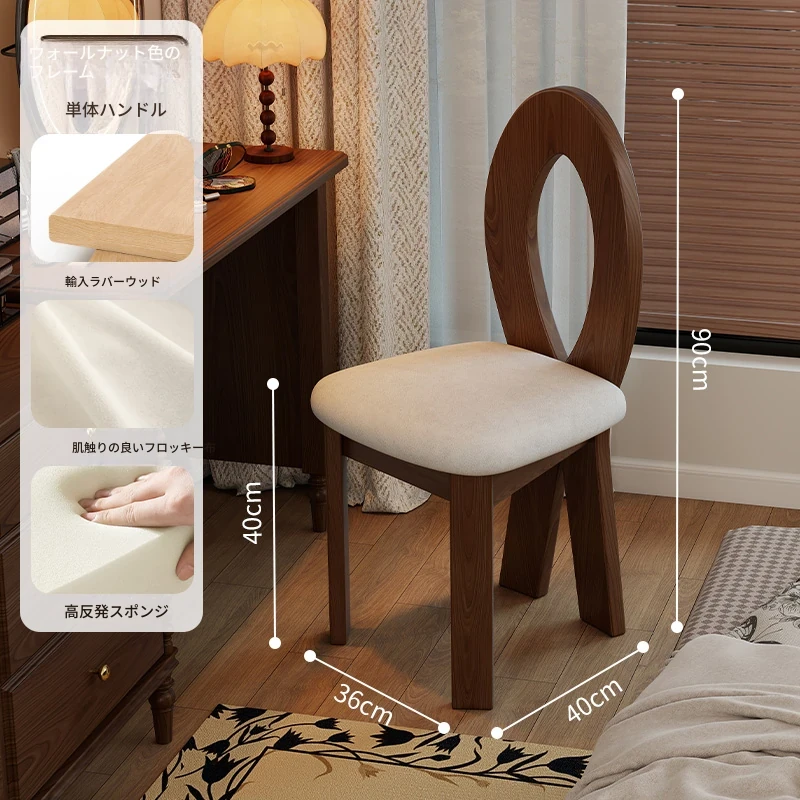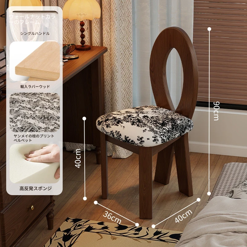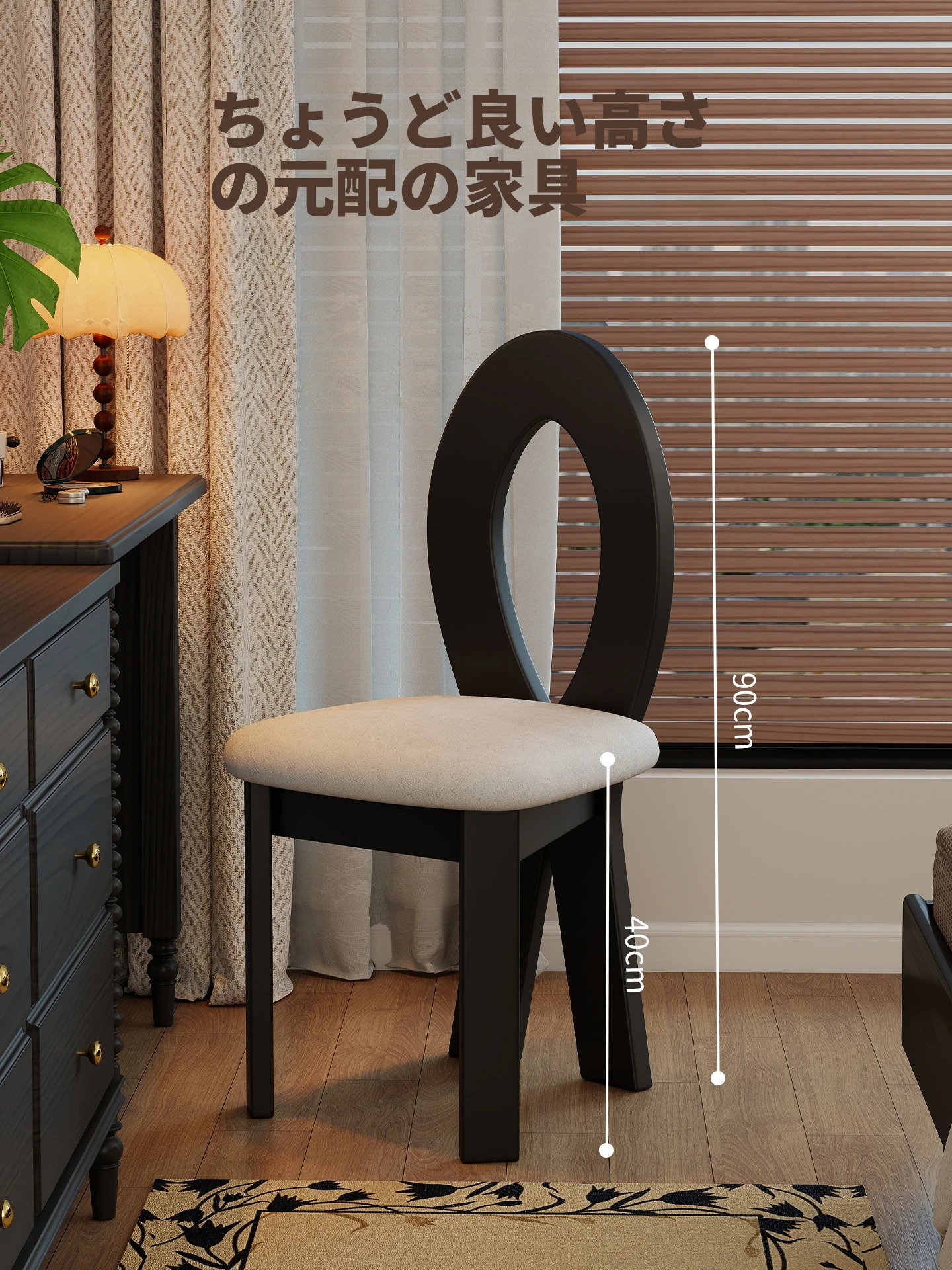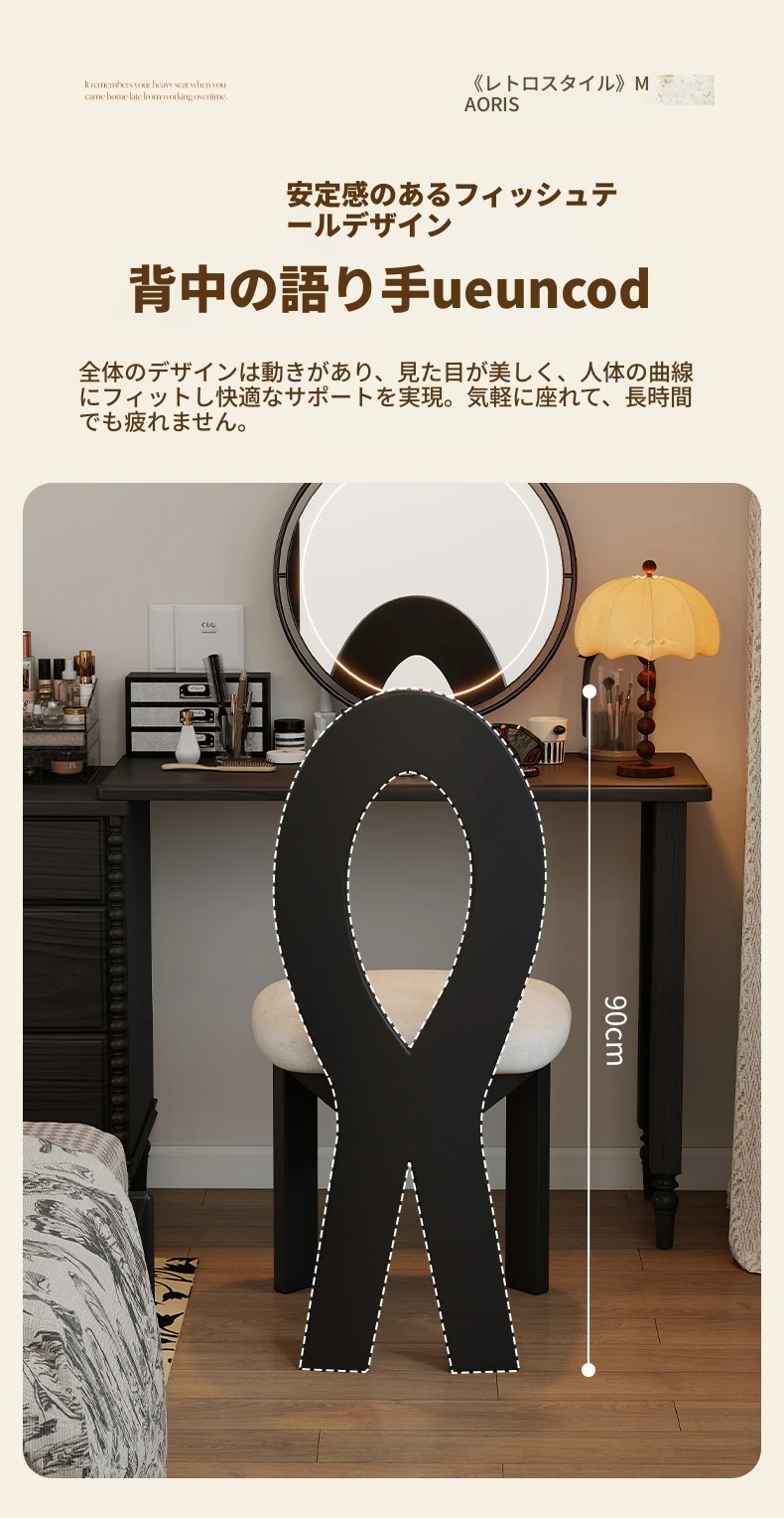 レトロな無垢材の化粧台椅子、寝室にぴったりのメイクアップチェア。人魚デザインのユニークな形状で、小さな部屋にも最適なフレンチスタイルのビンテージ化粧椅子。洗練された空間を演出!