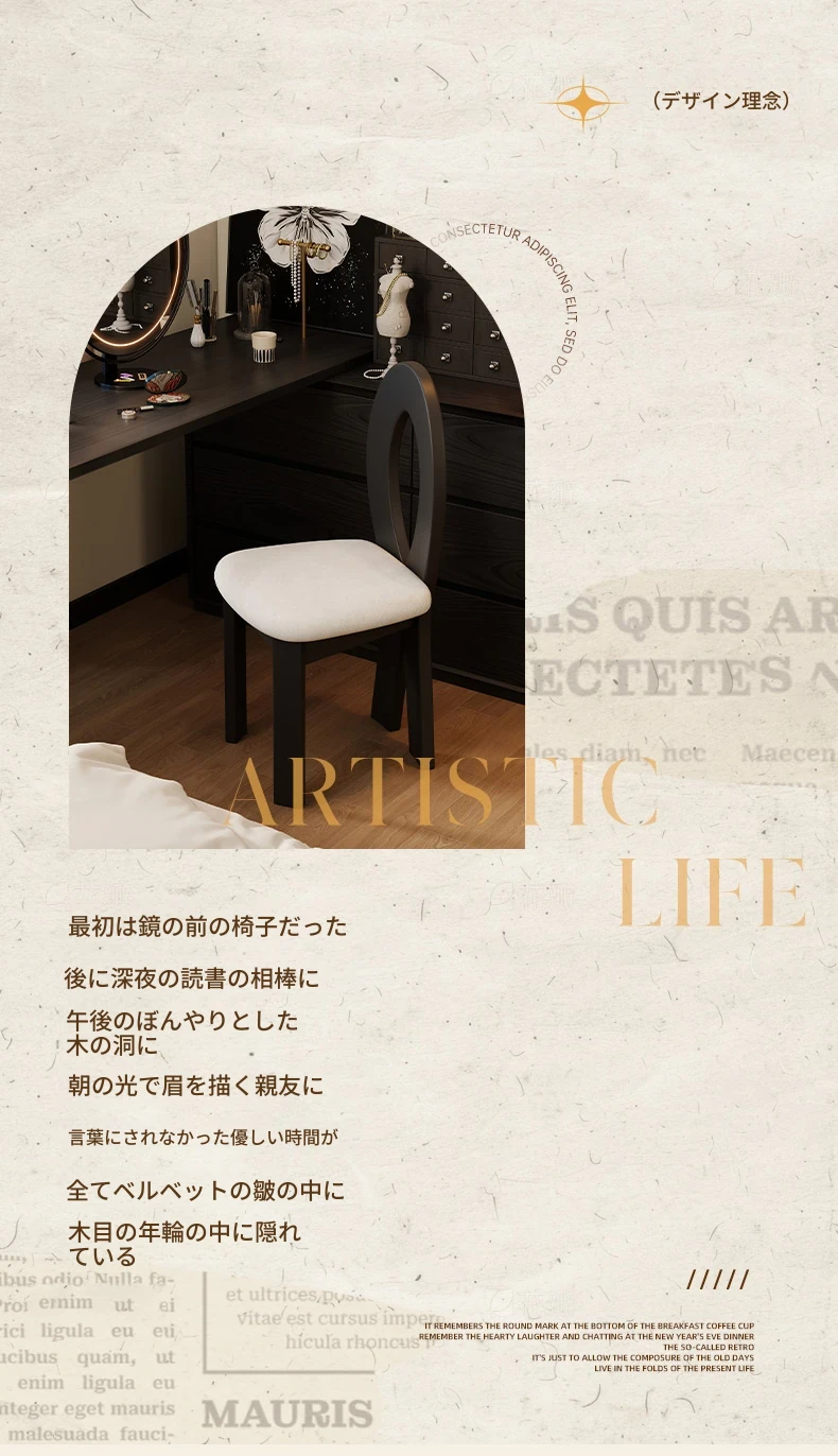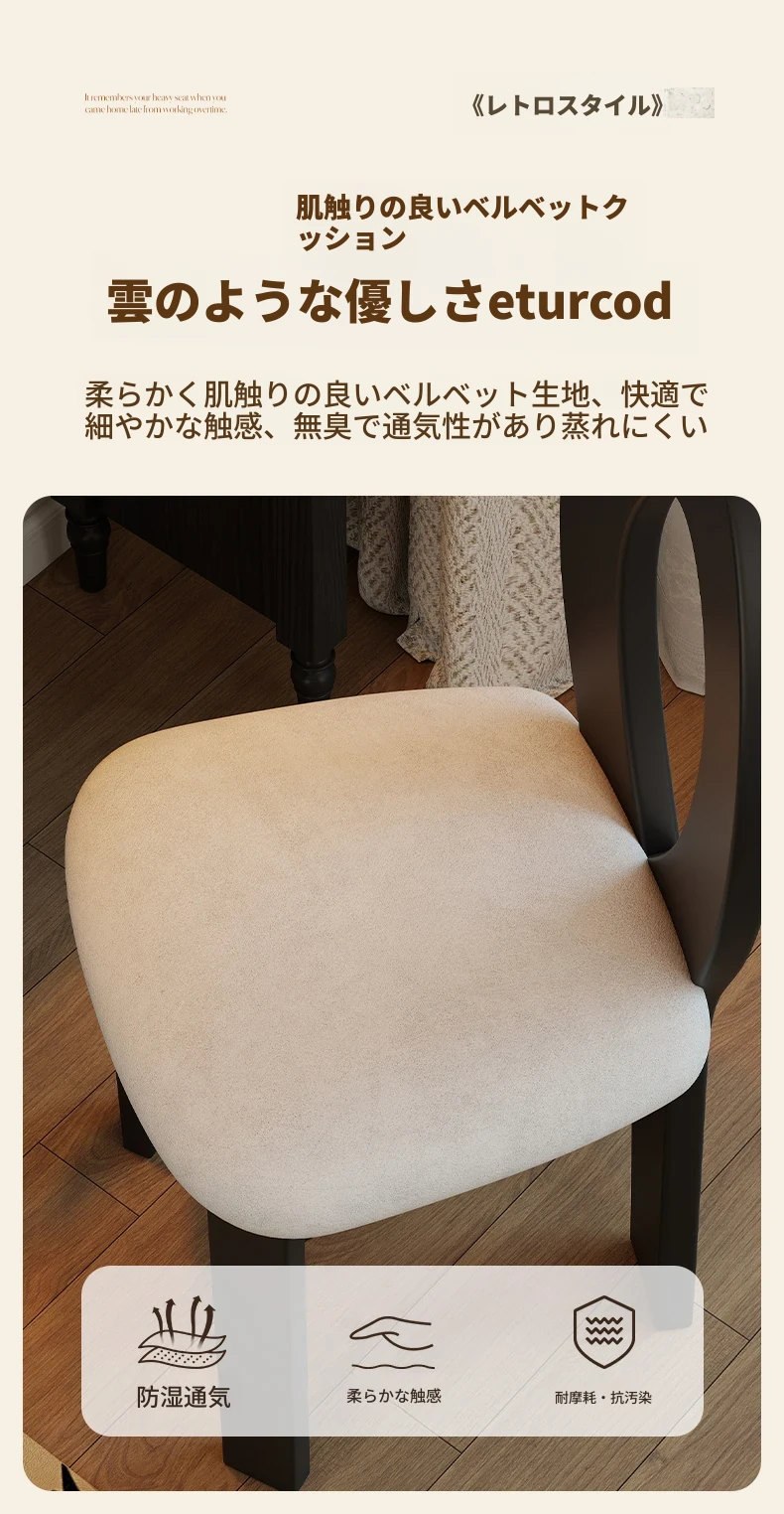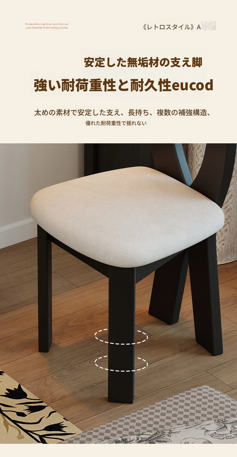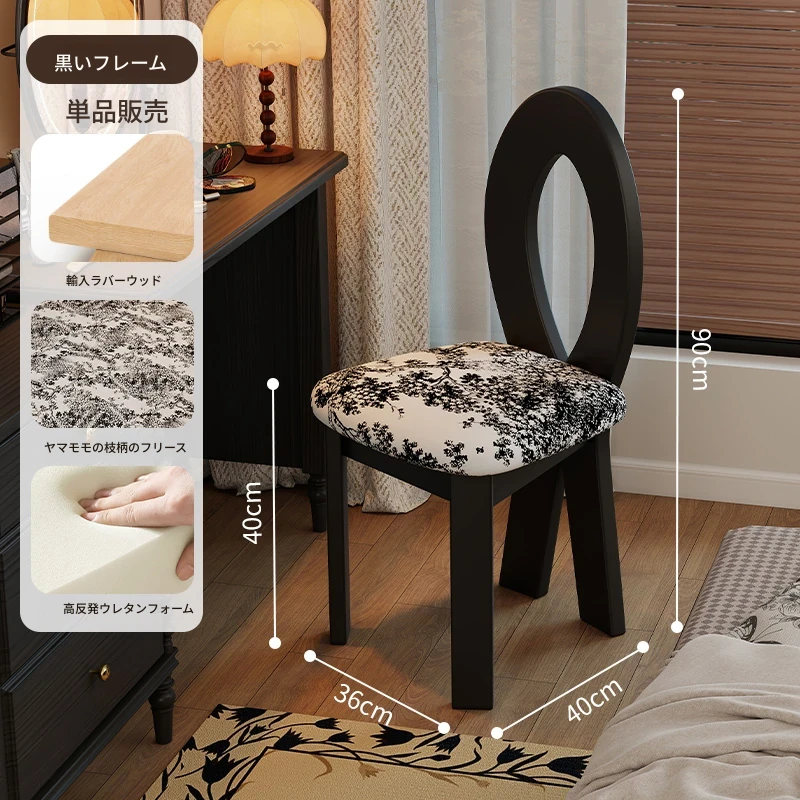 レトロな無垢材の化粧台椅子、寝室にぴったりのメイクアップチェア。人魚デザインのユニークな形状で、小さな部屋にも最適なフレンチスタイルのビンテージ化粧椅子。洗練された空間を演出!