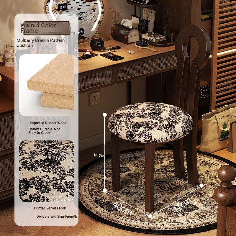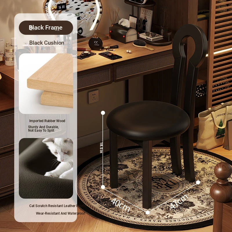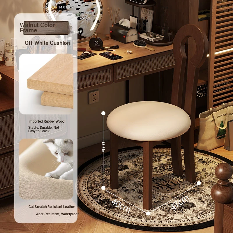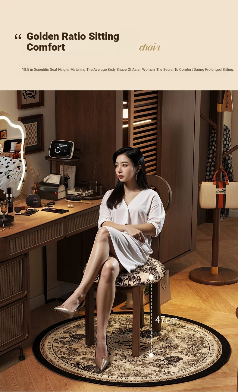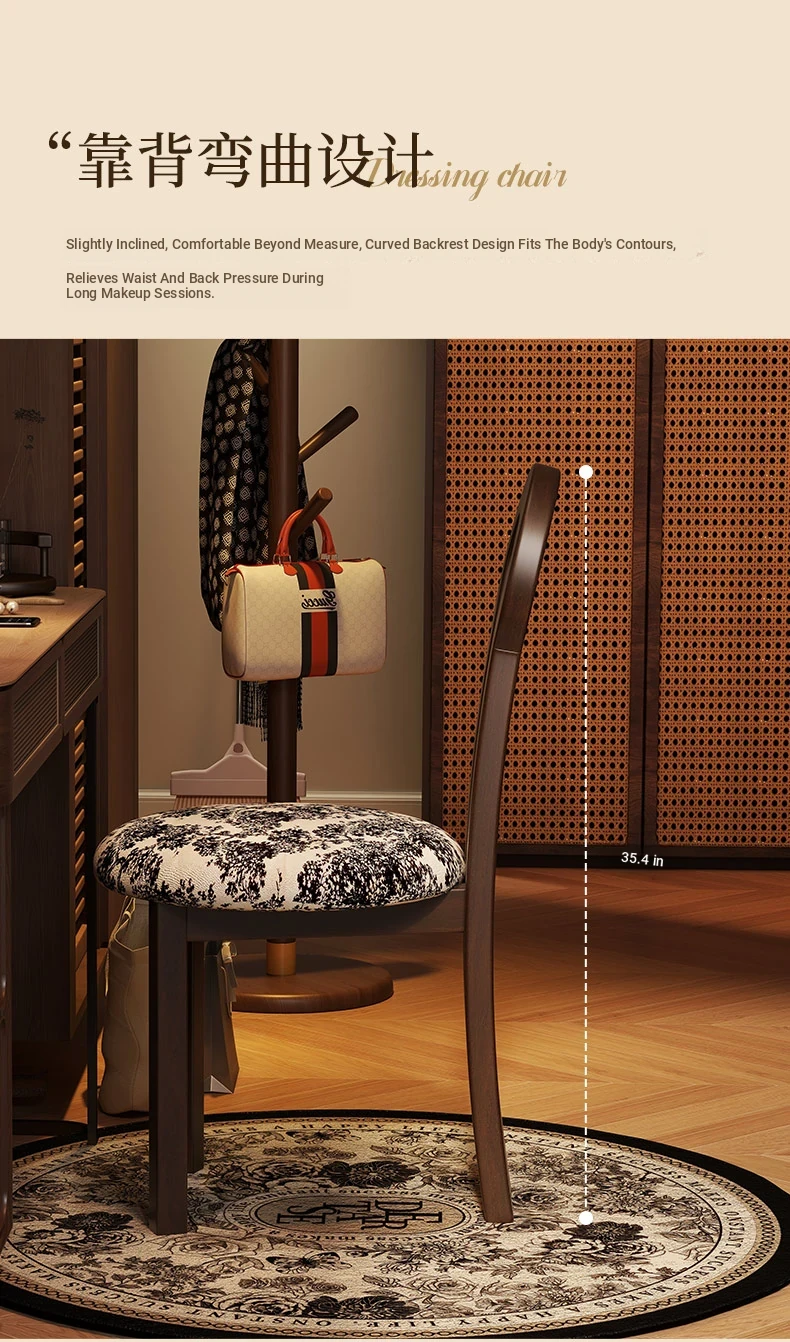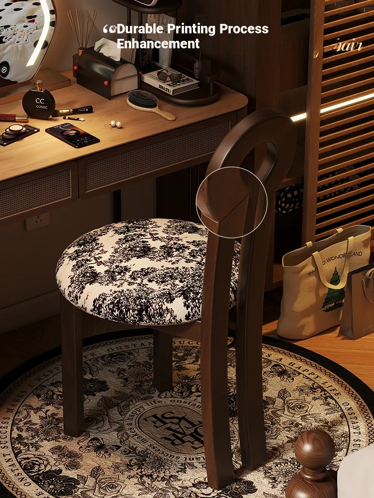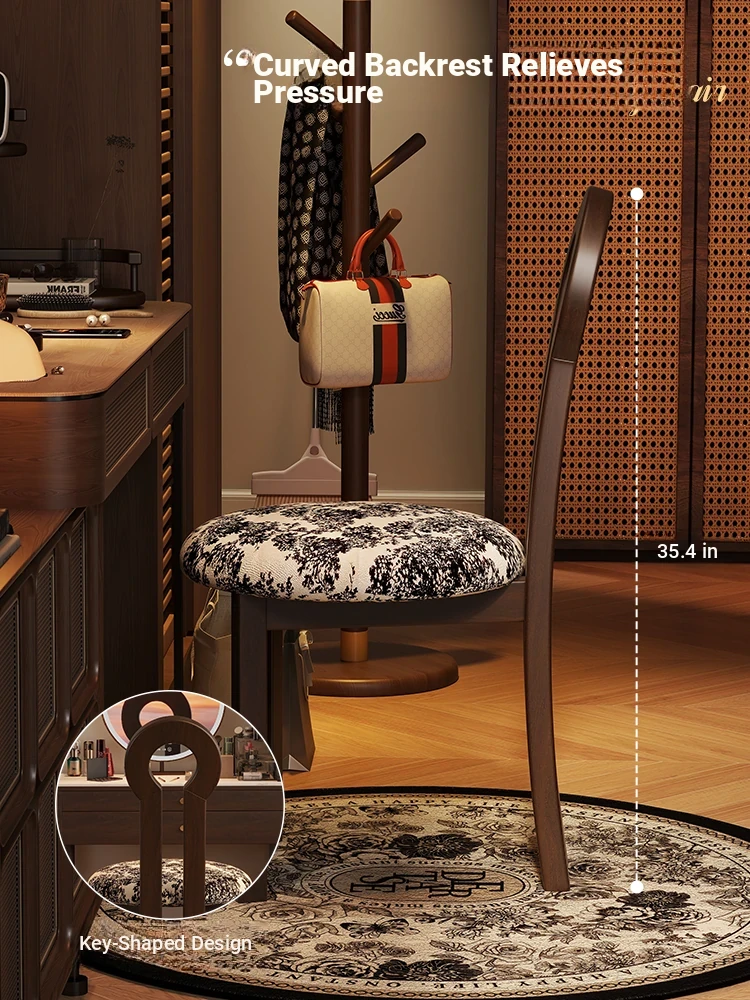 ヴィンテージ風の無垢材メイクアップスツール - 女の子のための寝室にぴったりな化粧台用背もたれ椅子。高級感あふれる軽やかなラグジュアリーを演出!