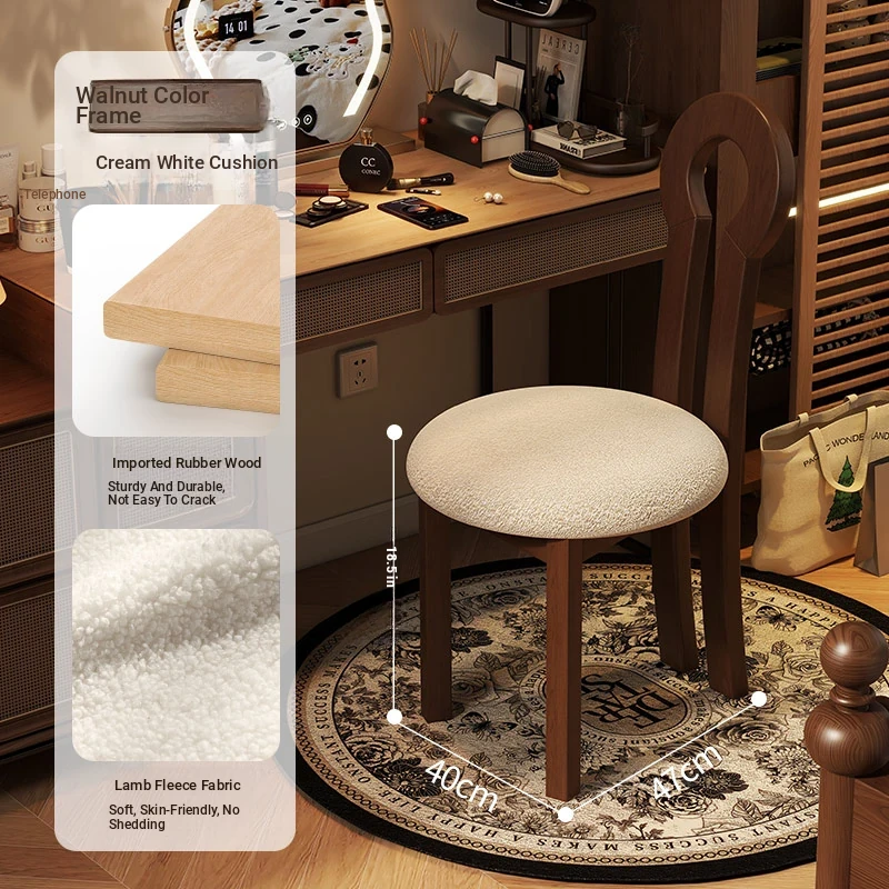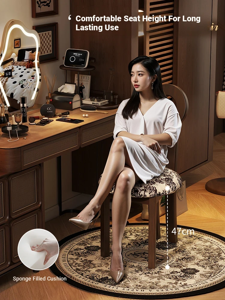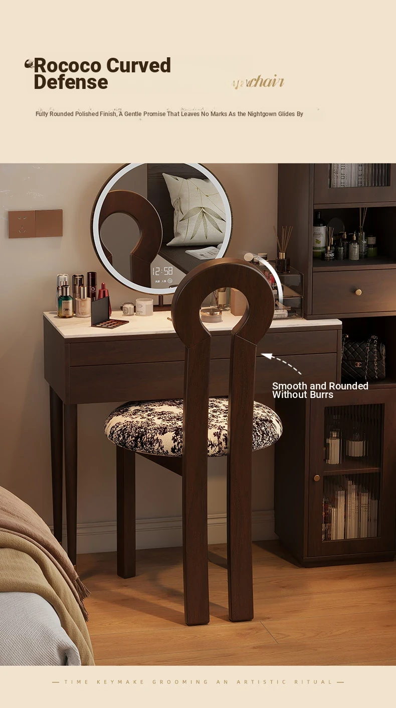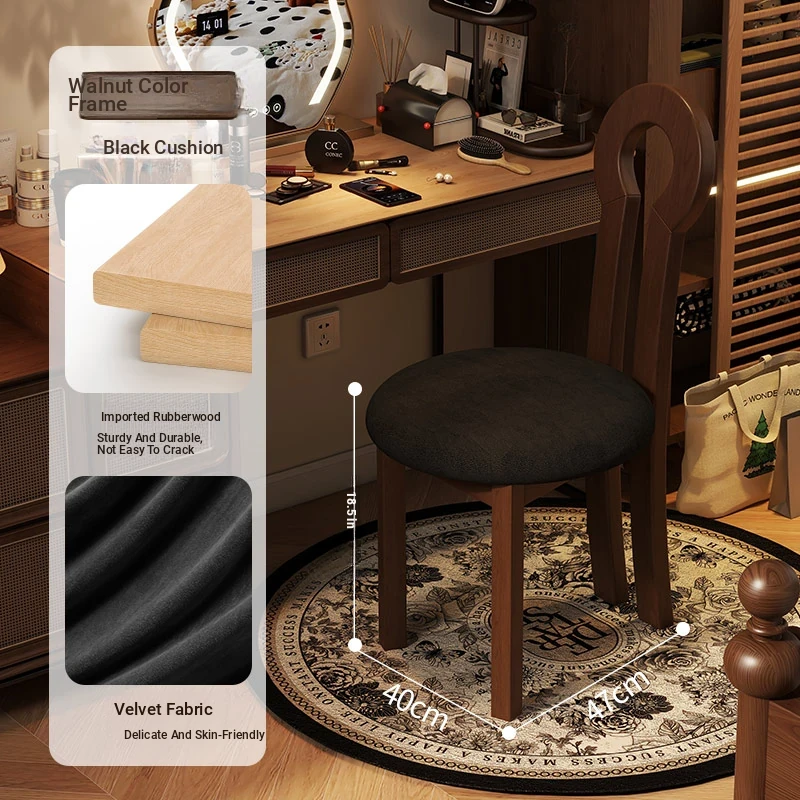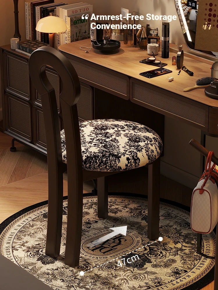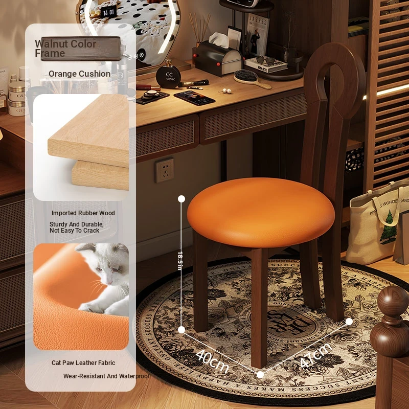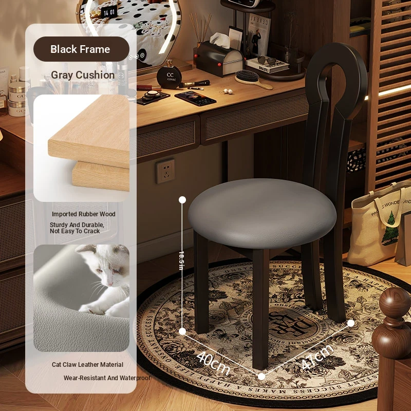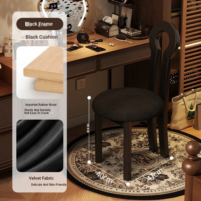 ヴィンテージ風の無垢材メイクアップスツール - 女の子のための寝室にぴったりな化粧台用背もたれ椅子。高級感あふれる軽やかなラグジュアリーを演出!
