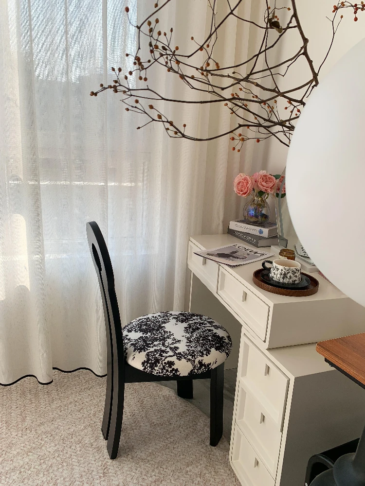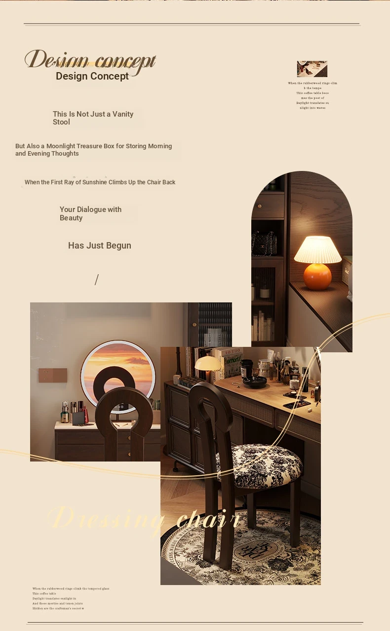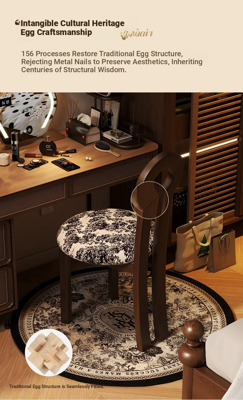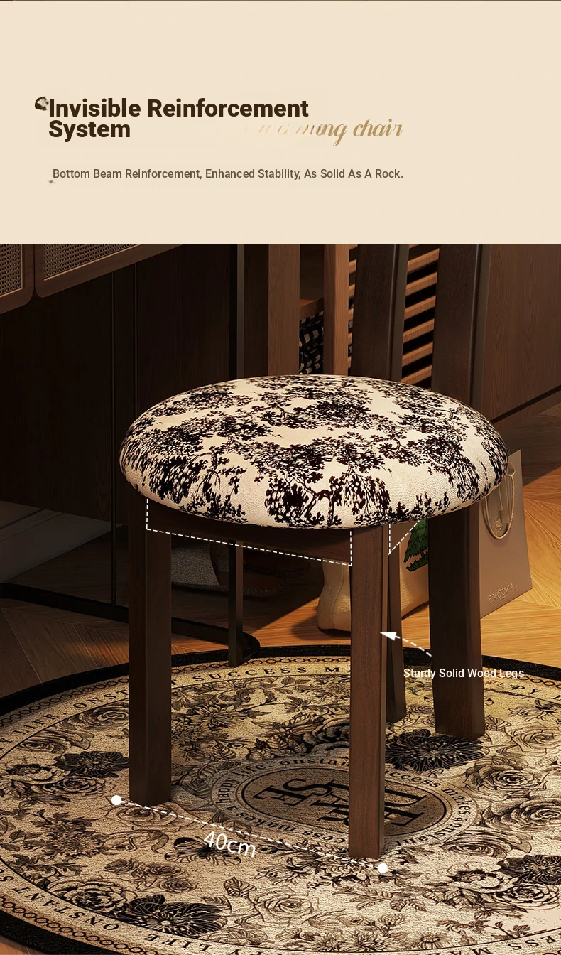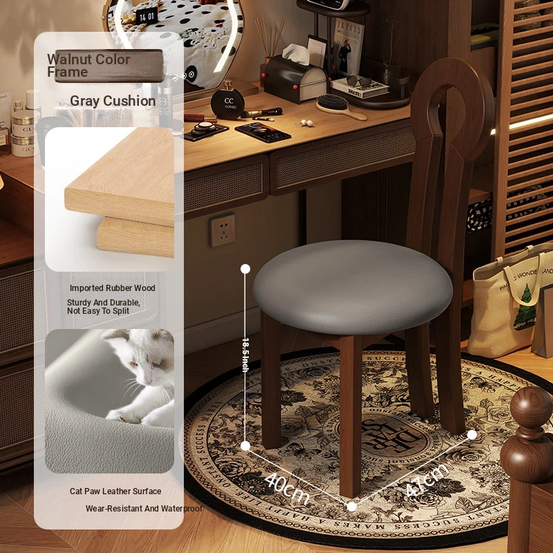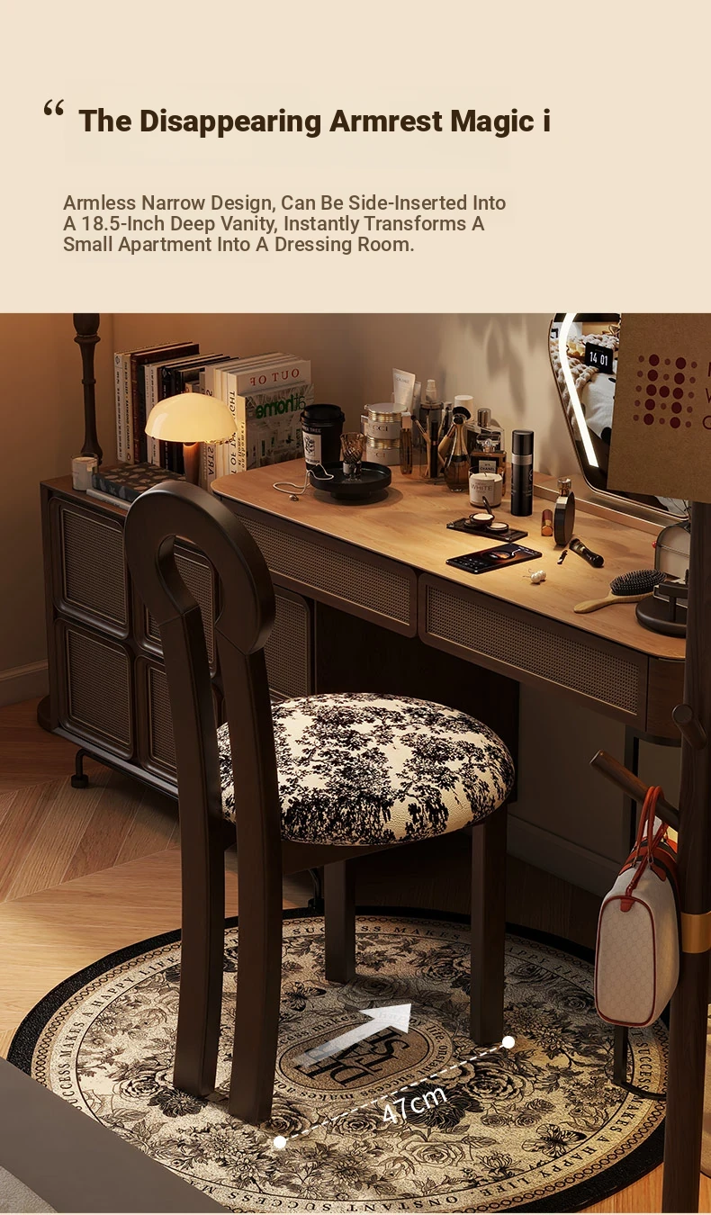 ヴィンテージ風の無垢材メイクアップスツール - 女の子のための寝室にぴったりな化粧台用背もたれ椅子。高級感あふれる軽やかなラグジュアリーを演出!
