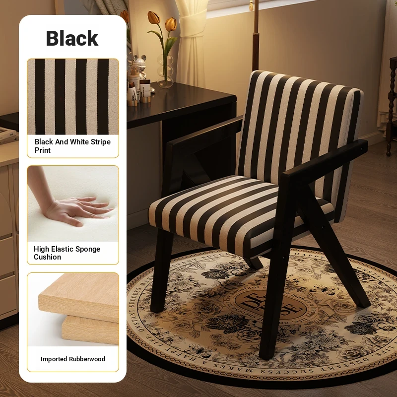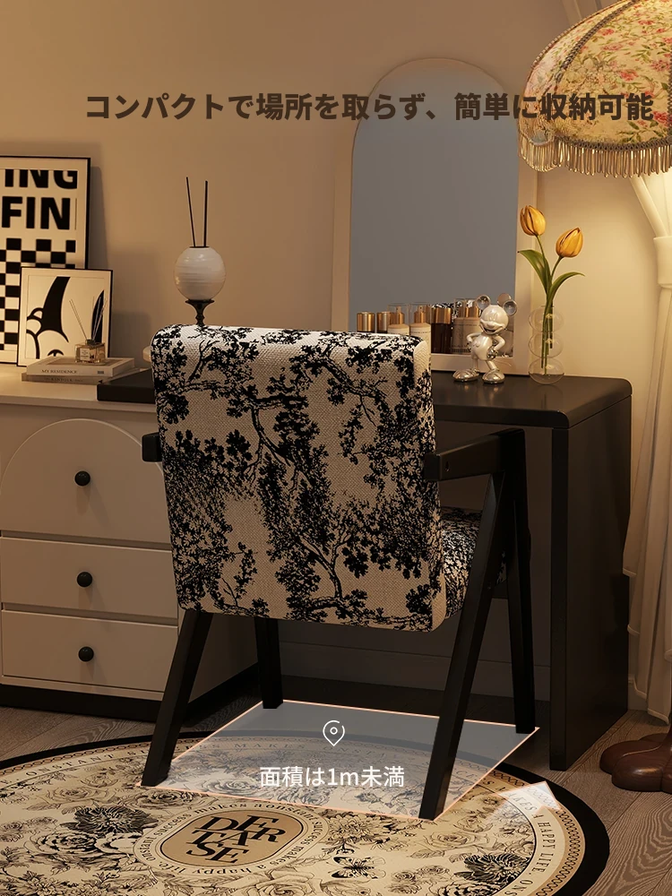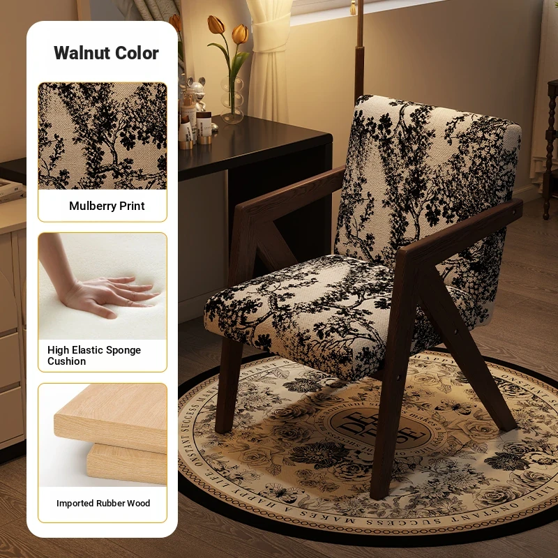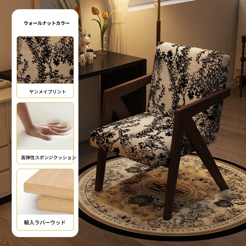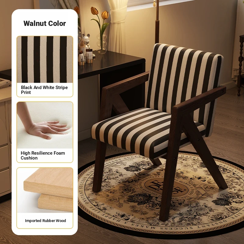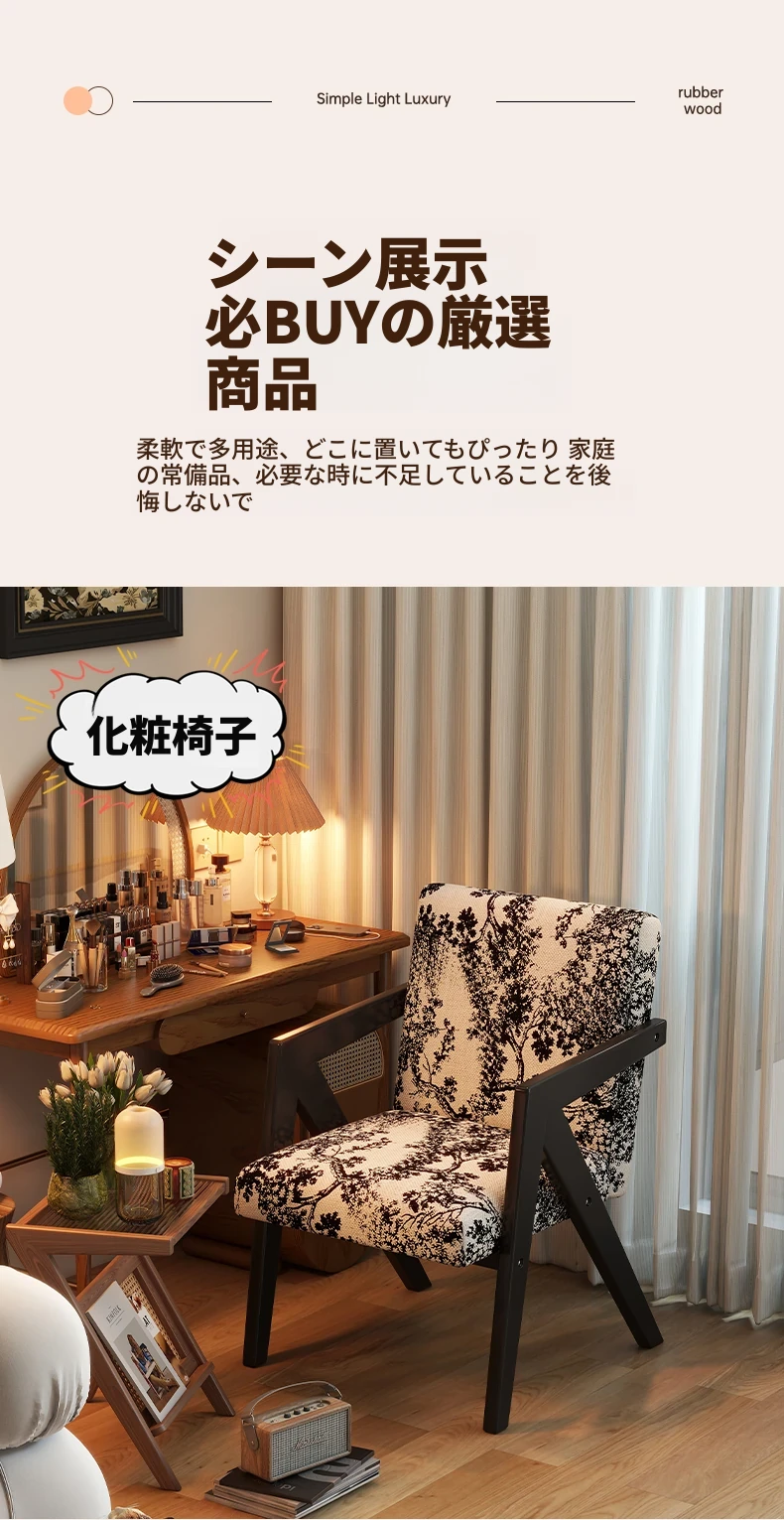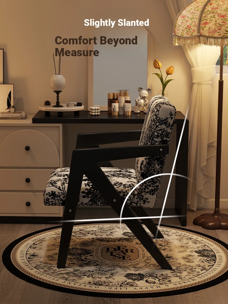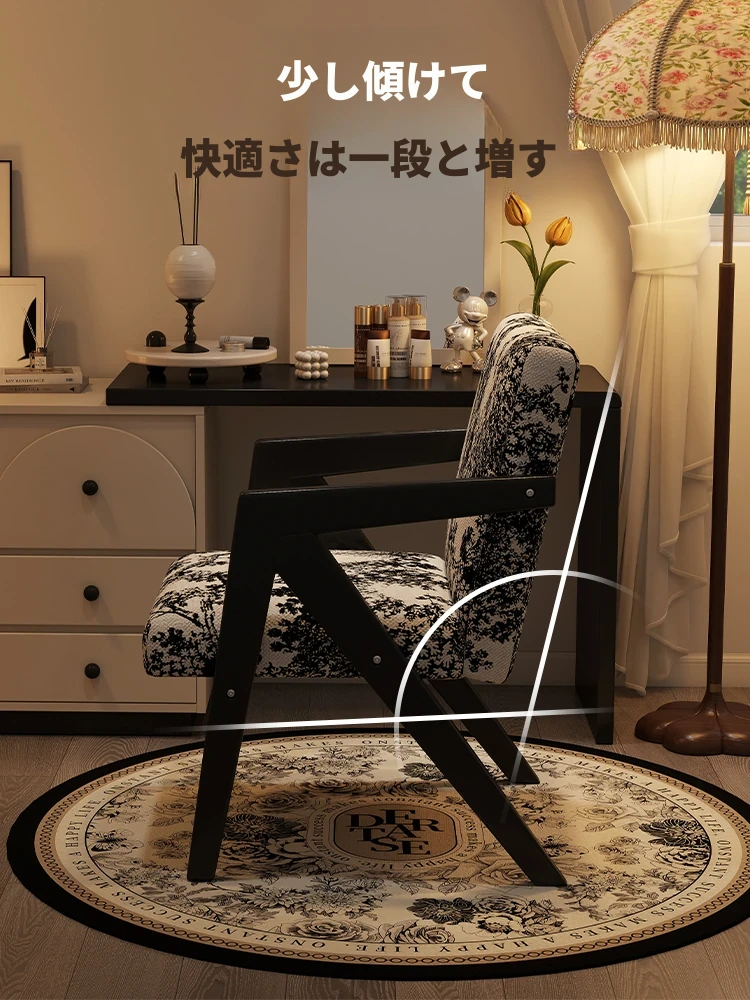 ヴィンテージ風の無垢材化粧台椅子|女性向け、背もたれ付き、リビングや寝室に最適な軽やかなラグジュアリー感|オフィスや書斎でも使えるおしゃれなデザイン!