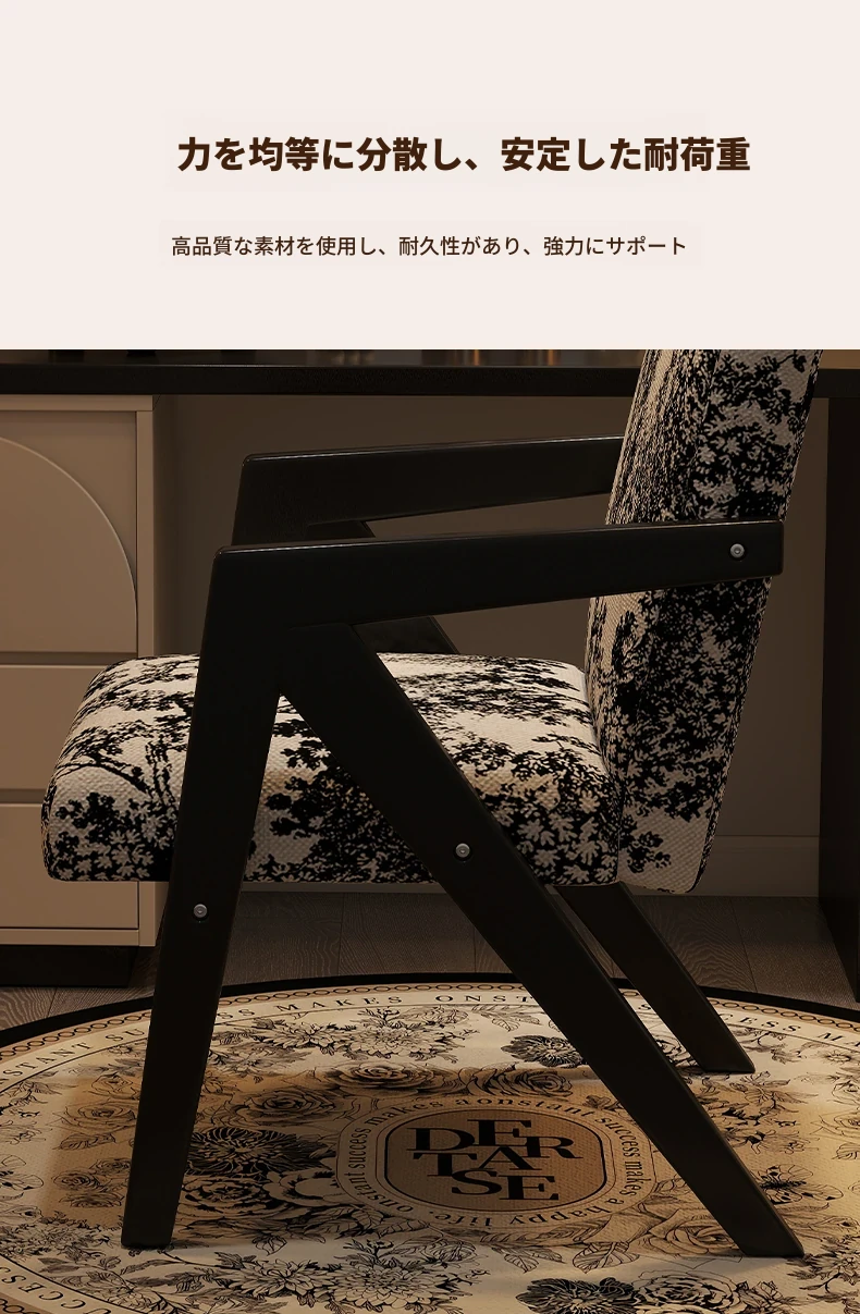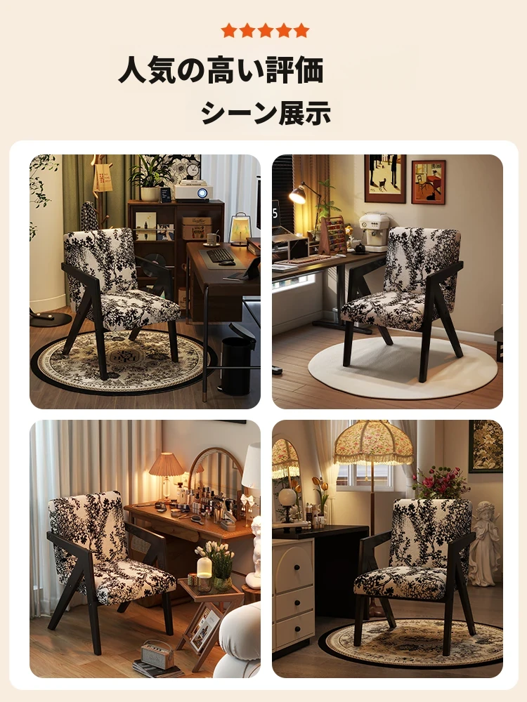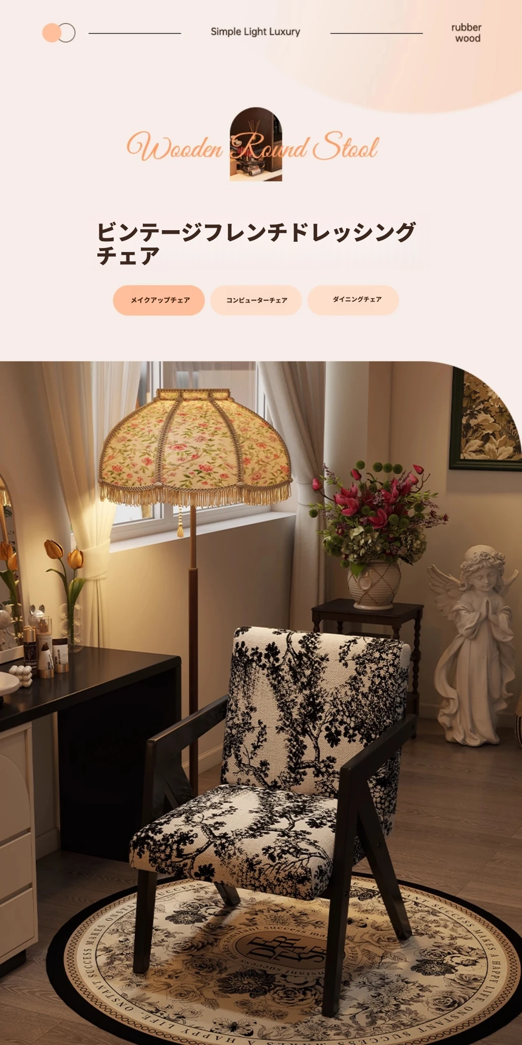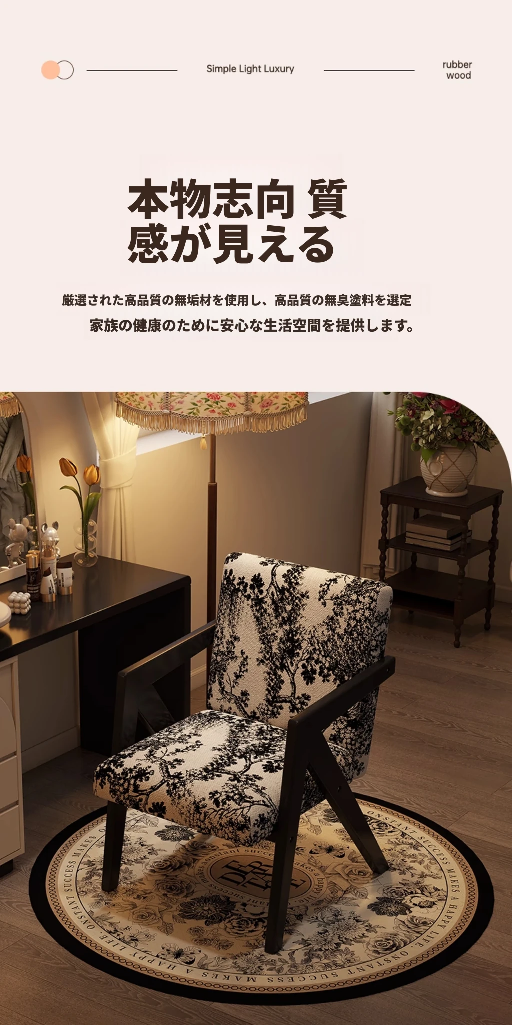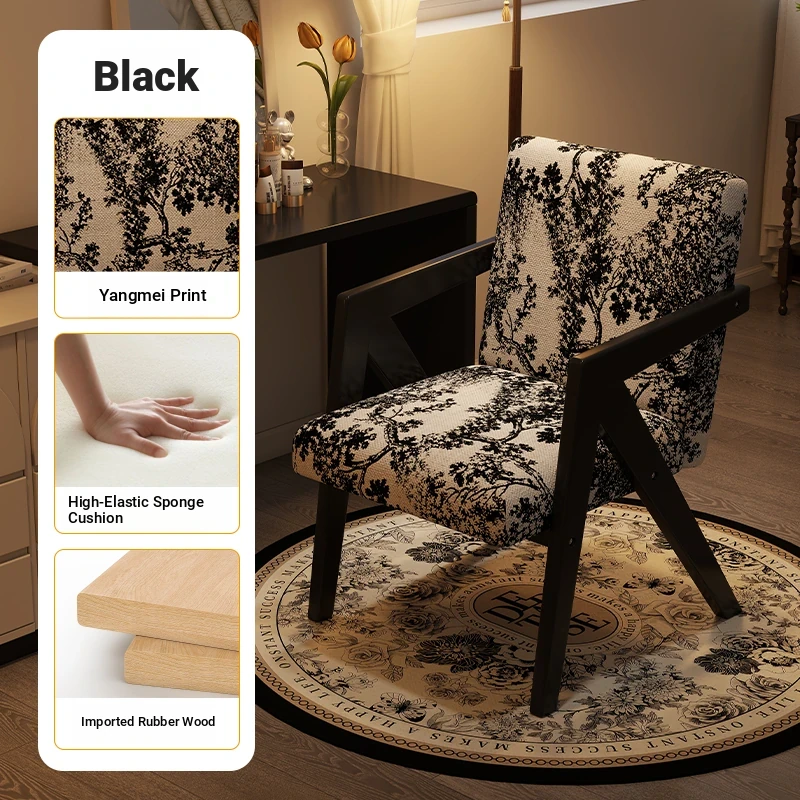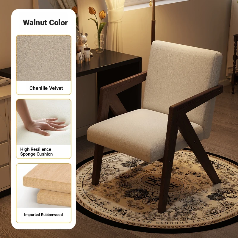 ヴィンテージ風の無垢材化粧台椅子|女性向け、背もたれ付き、リビングや寝室に最適な軽やかなラグジュアリー感|オフィスや書斎でも使えるおしゃれなデザイン!