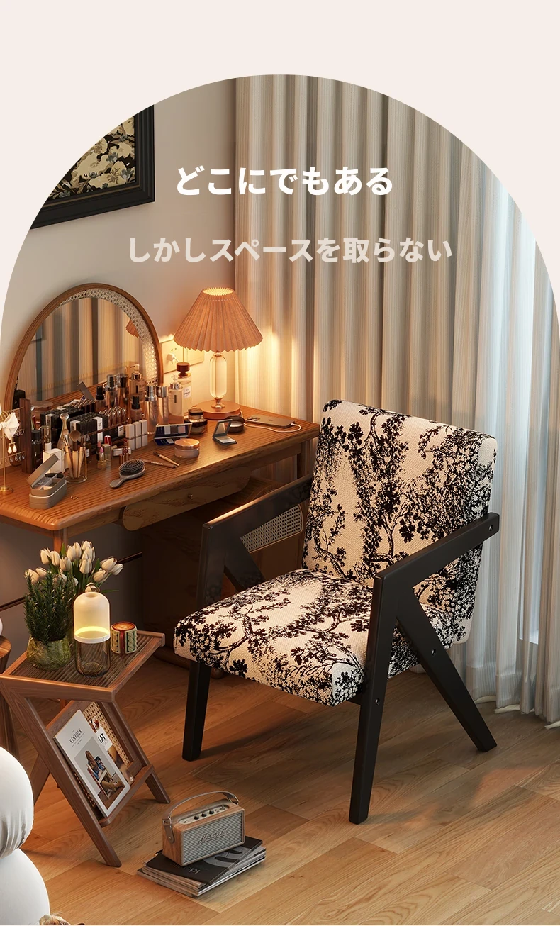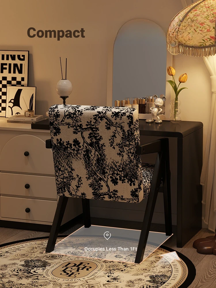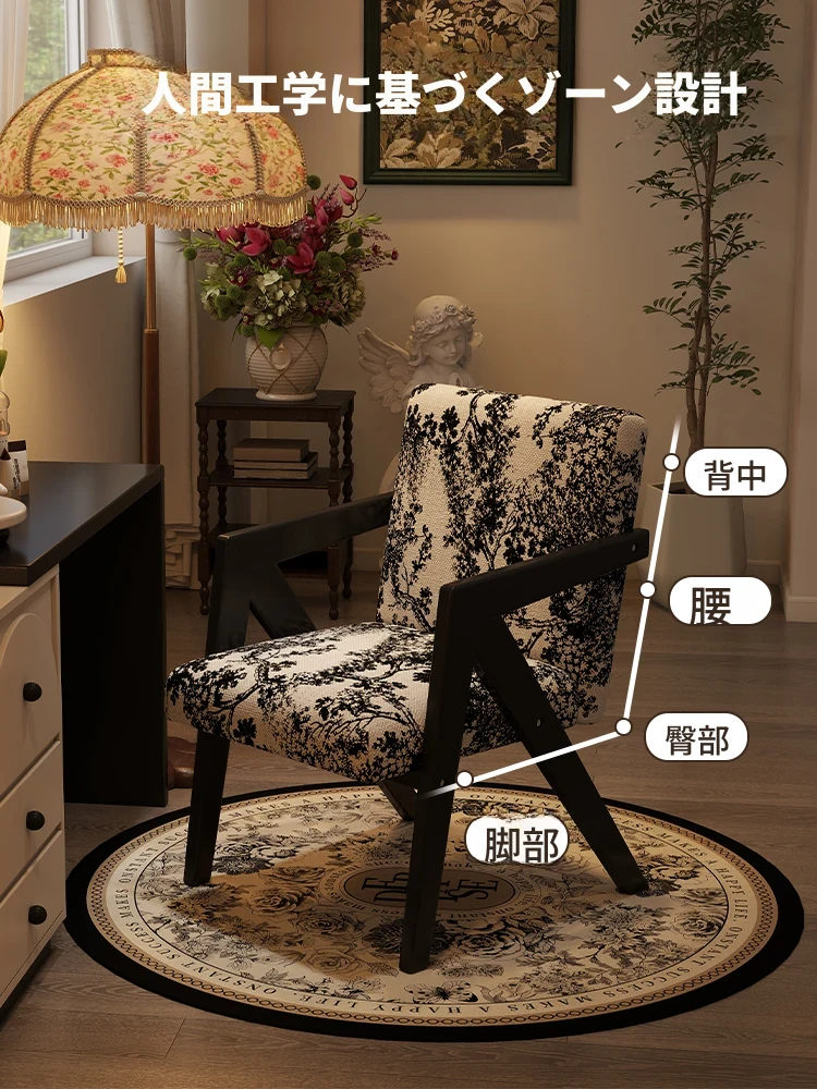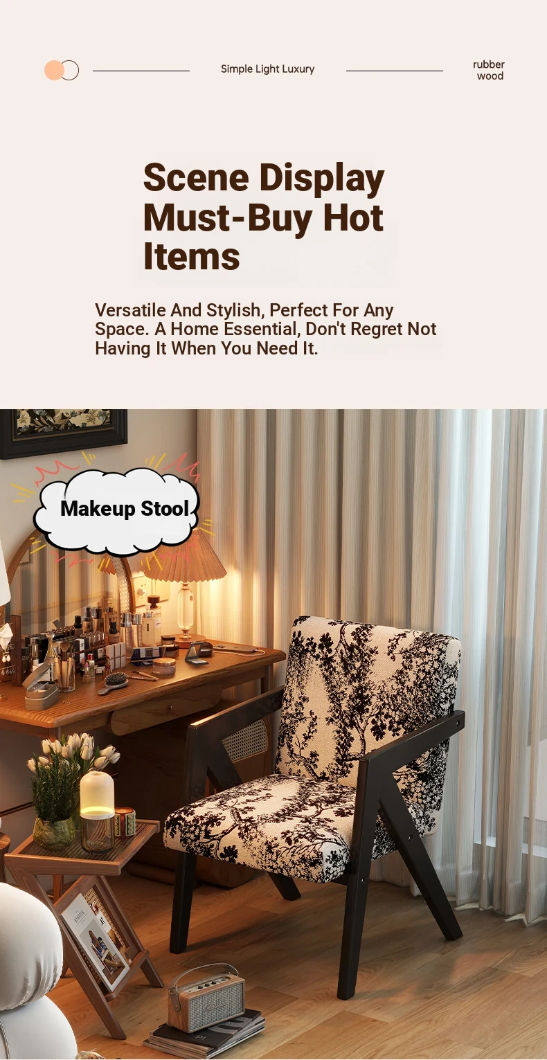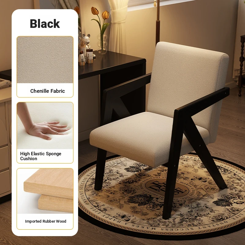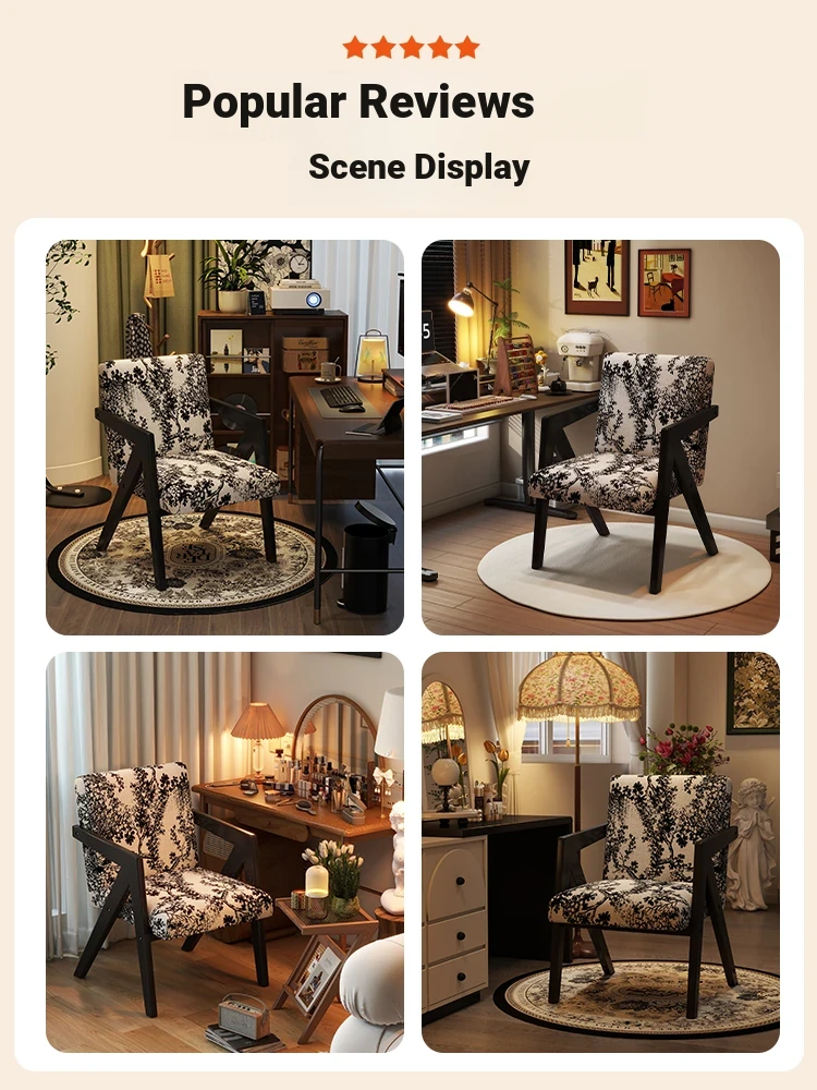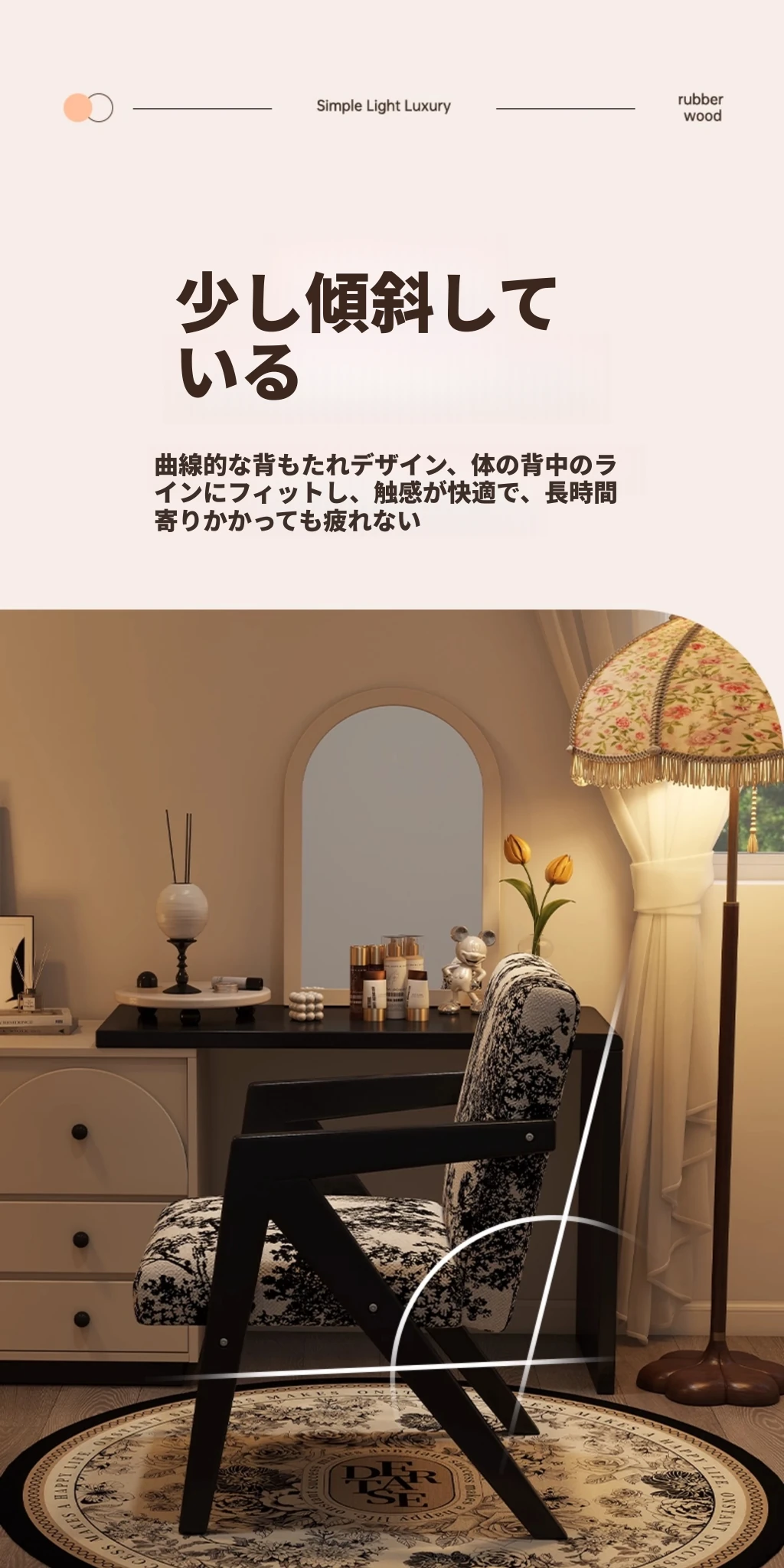 ヴィンテージ風の無垢材化粧台椅子|女性向け、背もたれ付き、リビングや寝室に最適な軽やかなラグジュアリー感|オフィスや書斎でも使えるおしゃれなデザイン!