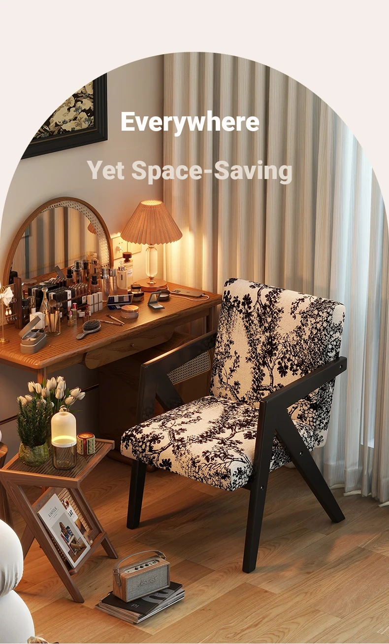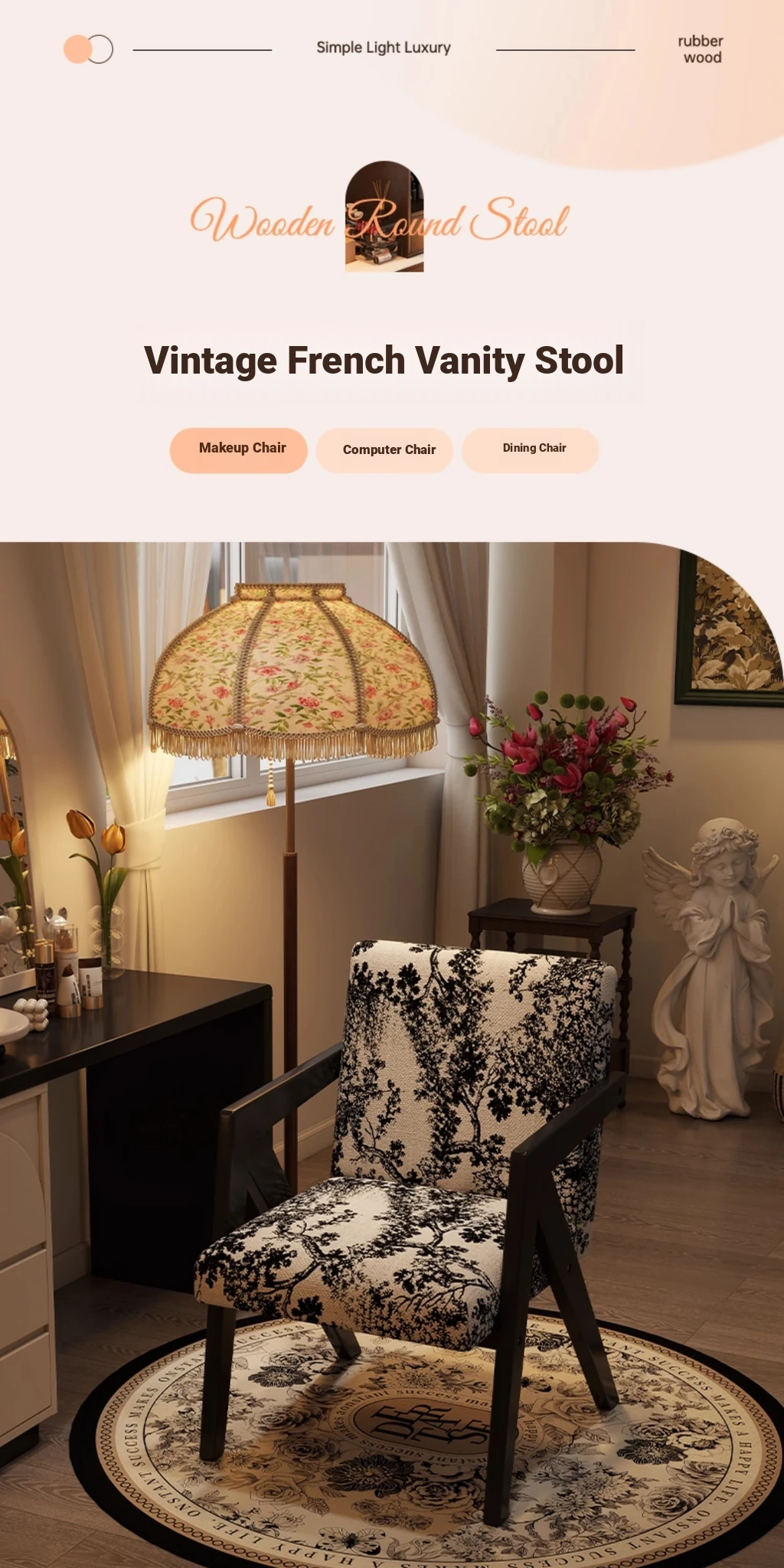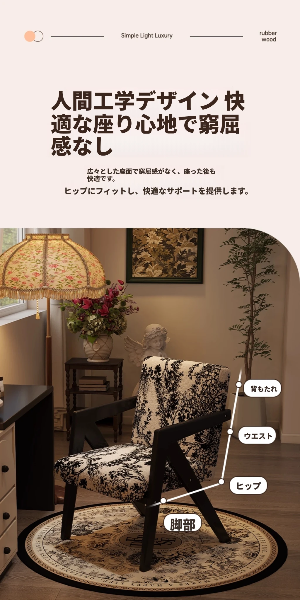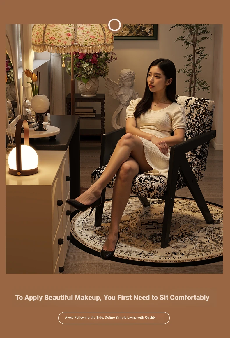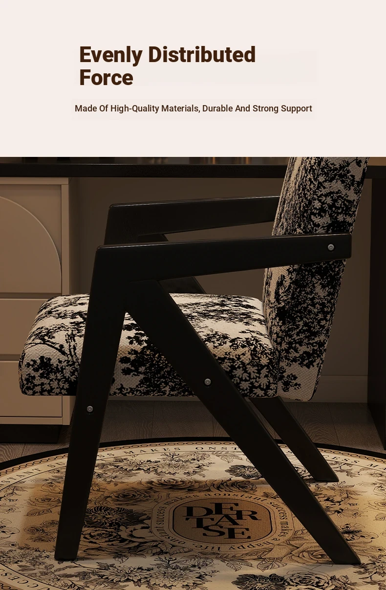 ヴィンテージ風の無垢材化粧台椅子|女性向け、背もたれ付き、リビングや寝室に最適な軽やかなラグジュアリー感|オフィスや書斎でも使えるおしゃれなデザイン!