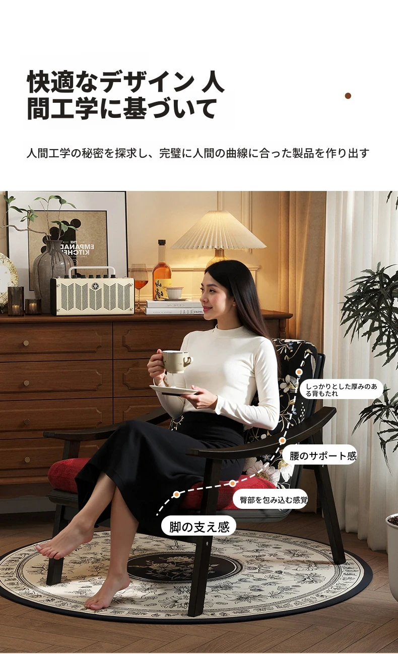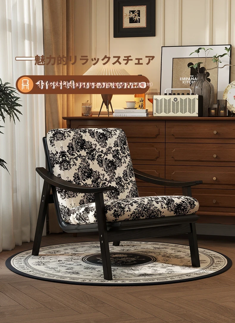 フレンチスタイルのヴィンテージデザイン!実木製の一人掛けソファチェアは、古風でありながら洗練された高級感を演出。リビングやバルコニー、寝室に最適なアイテムで、あなたの空間を特別なものにします。