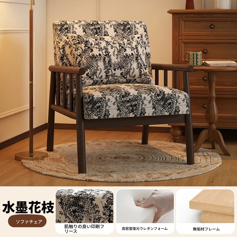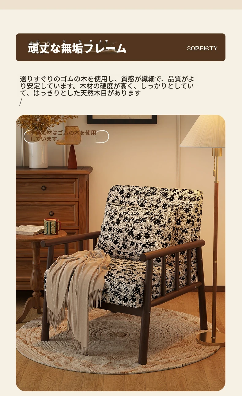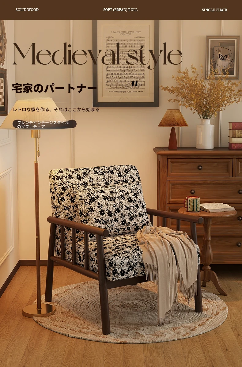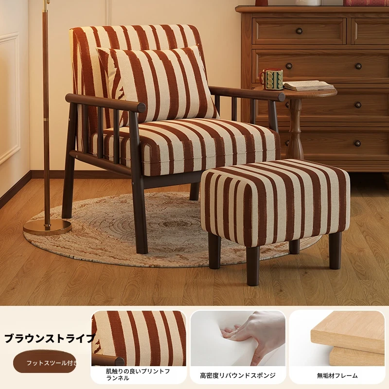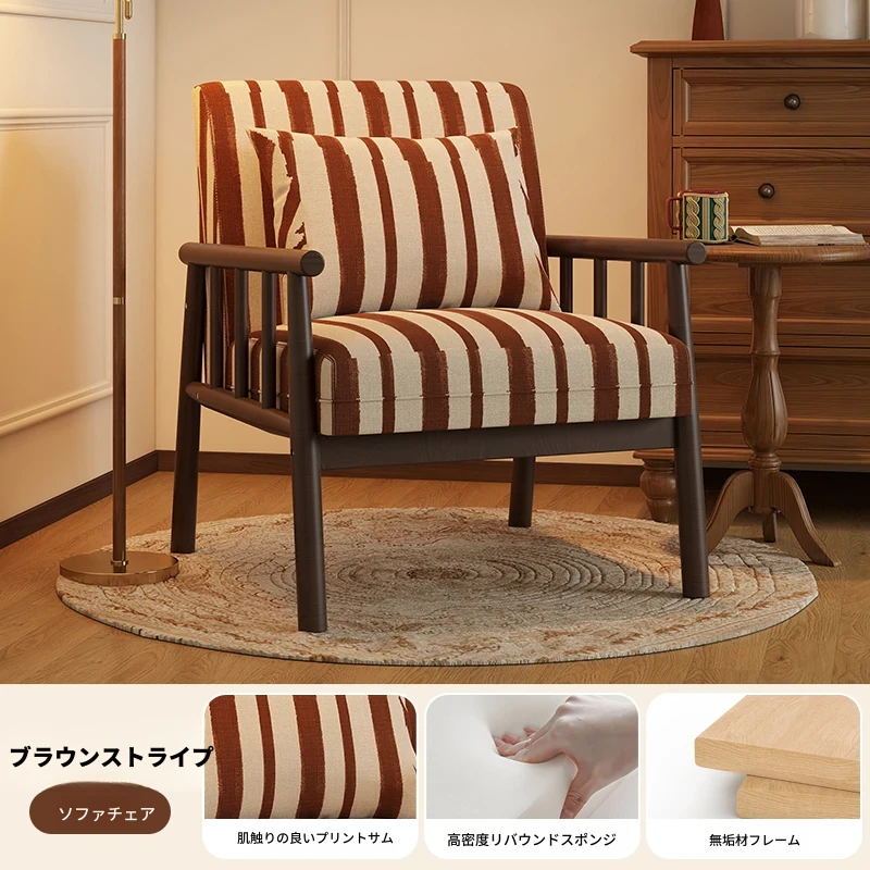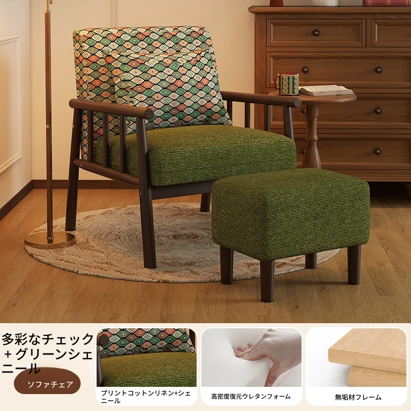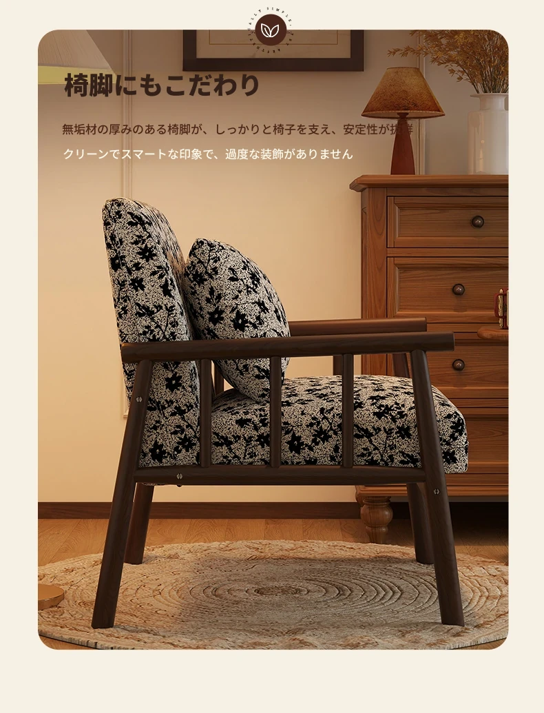 一人用ヴィンテージ風デザインのリラックスチェア - 無垢材製のレトロスタイル、リビングやバルコニーに最適な快適な背もたれ付き。あなたの空間に洗練された雰囲気をプラス!