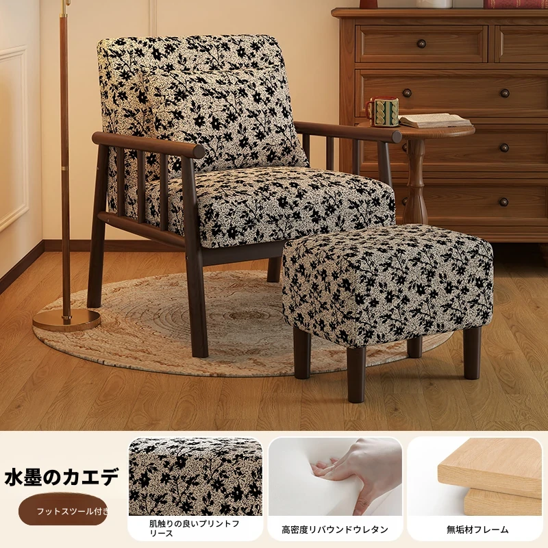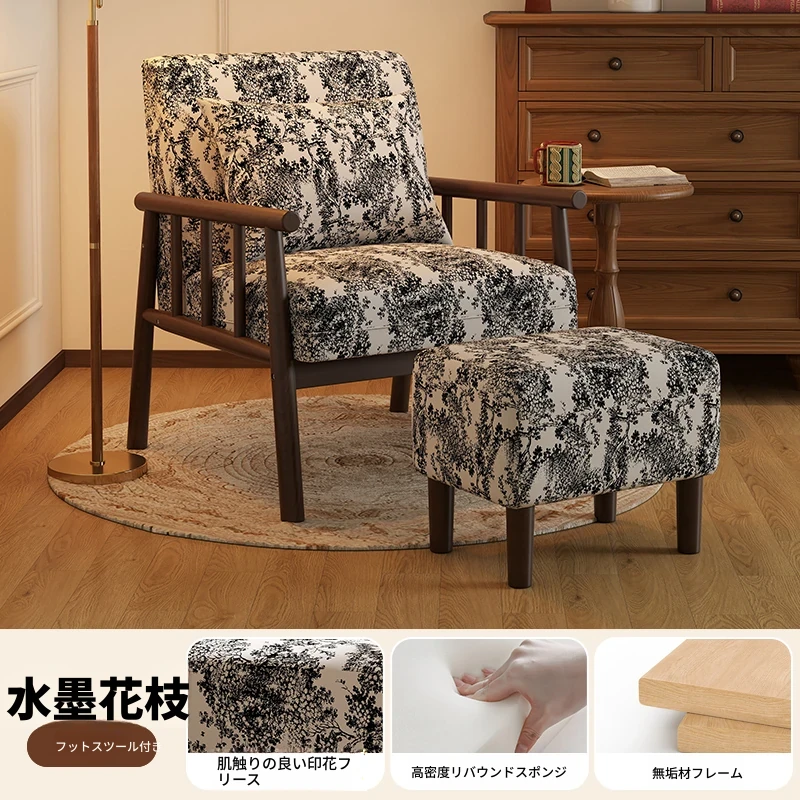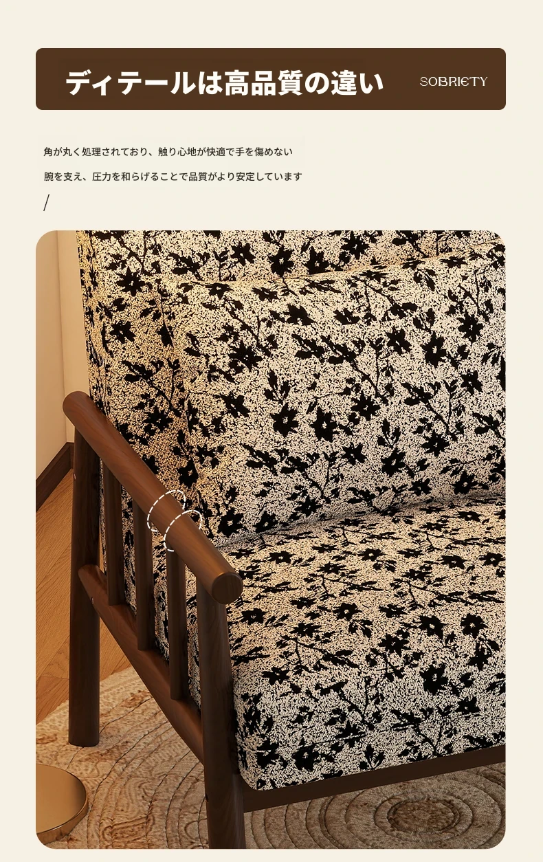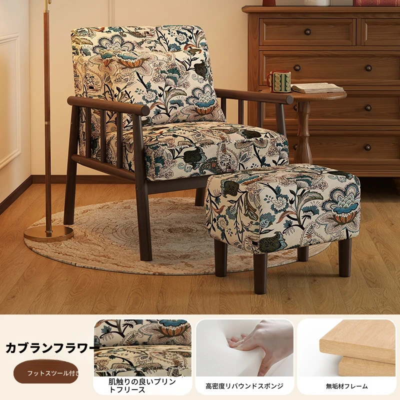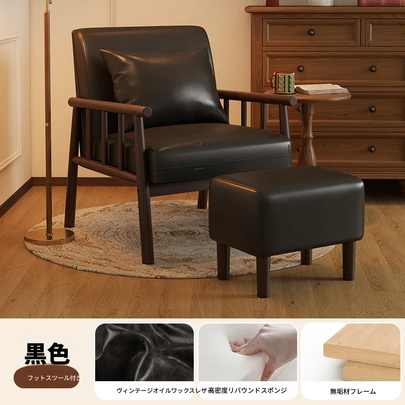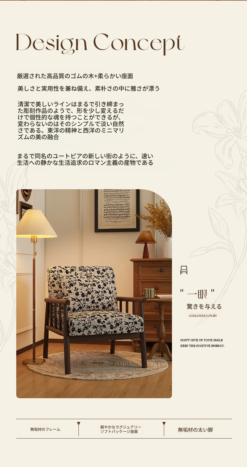 一人用ヴィンテージ風デザインのリラックスチェア - 無垢材製のレトロスタイル、リビングやバルコニーに最適な快適な背もたれ付き。あなたの空間に洗練された雰囲気をプラス!