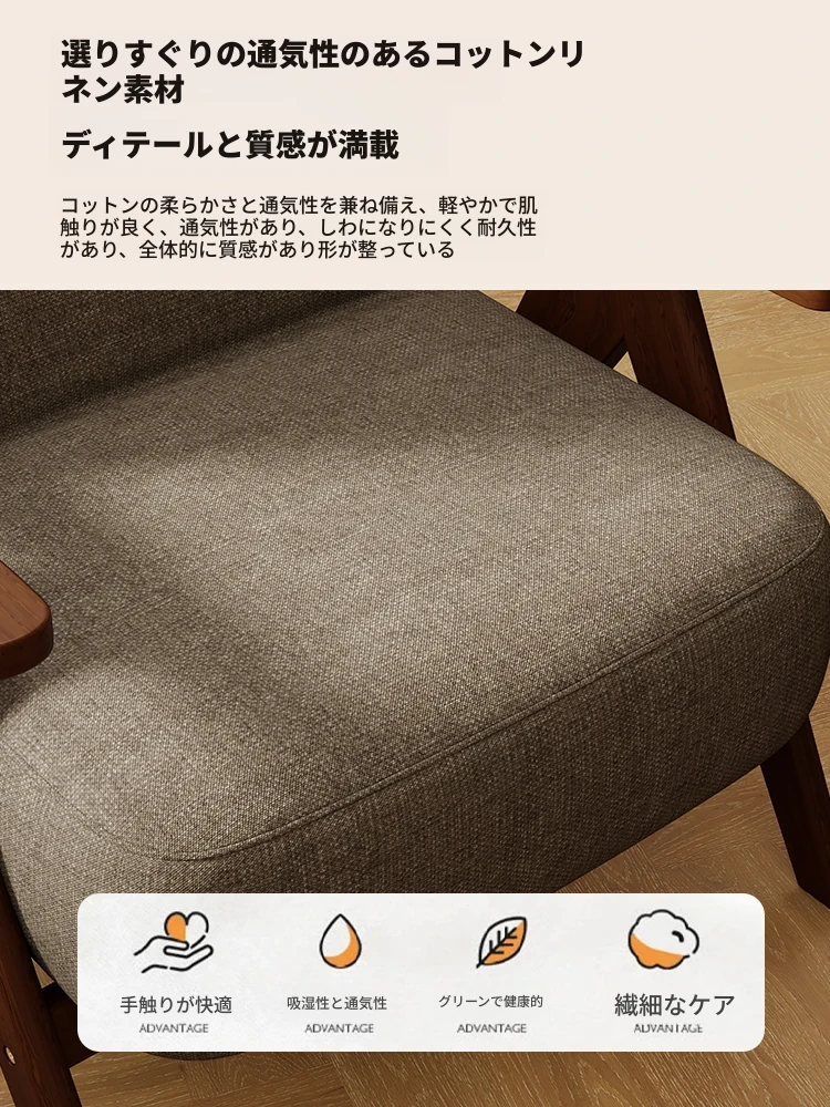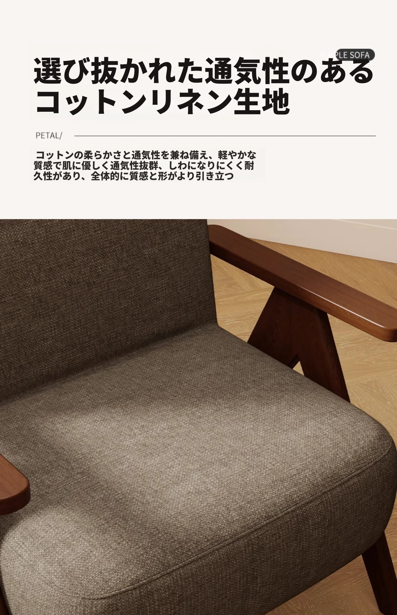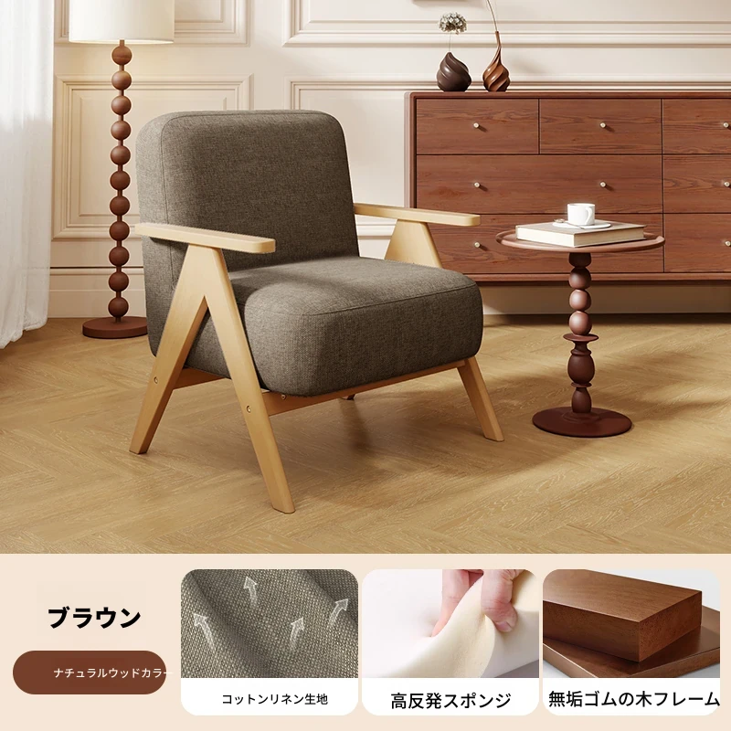 レトロブラウン【通気性のあるコットンリネン+ナチュラルウッドフレーム】