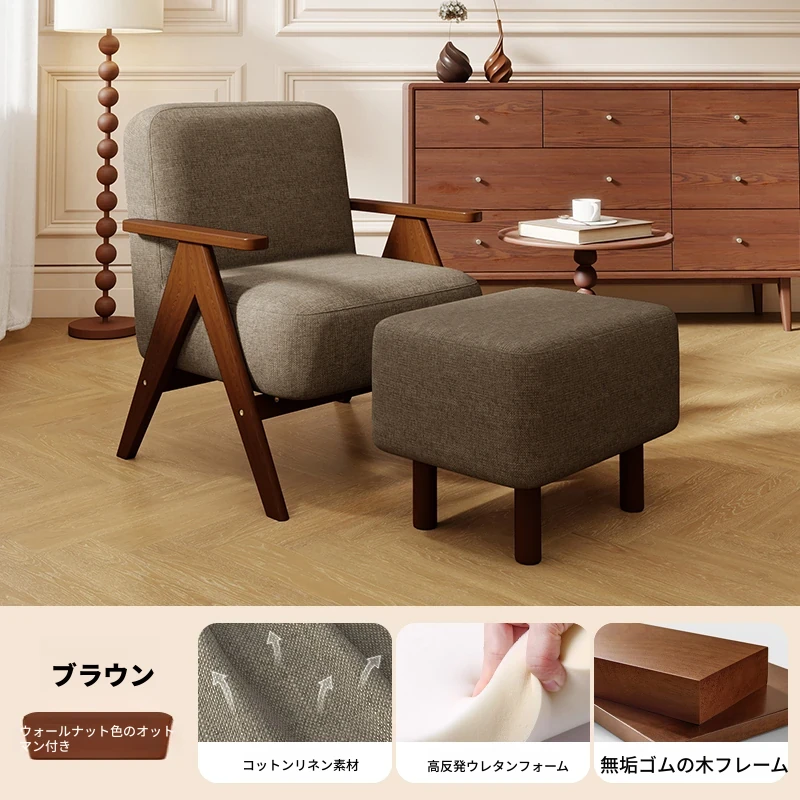 レトロブラウン+スツール【通気性のあるコットンリネン+ウォールナットウッドフレーム】