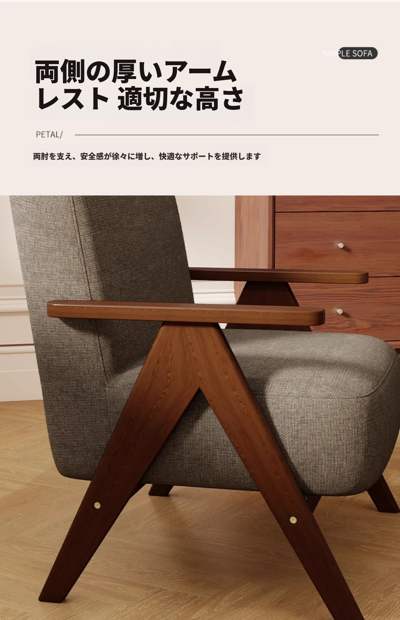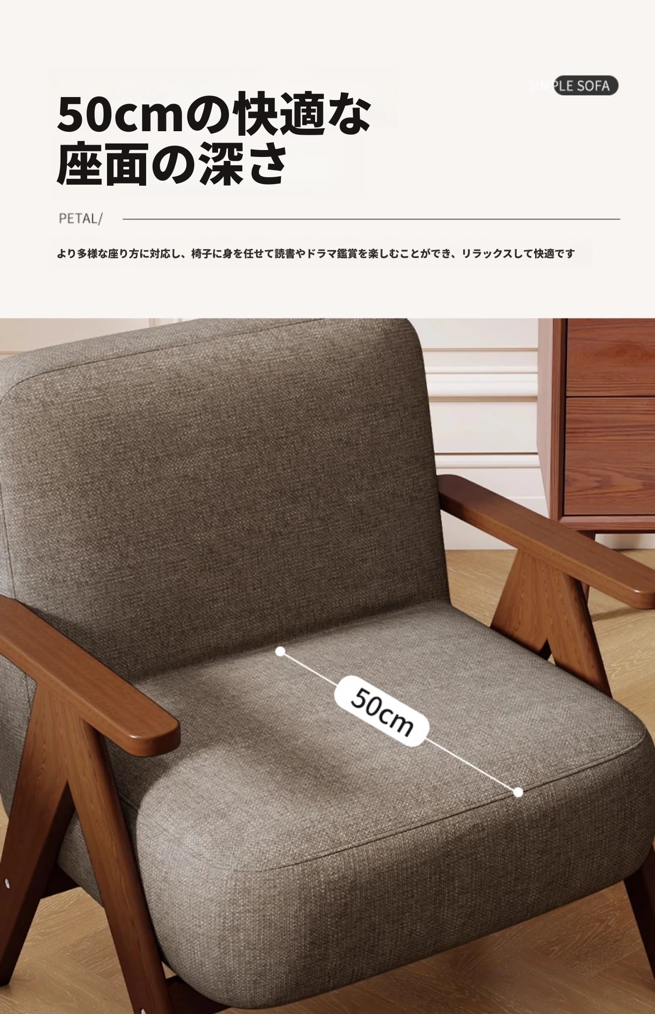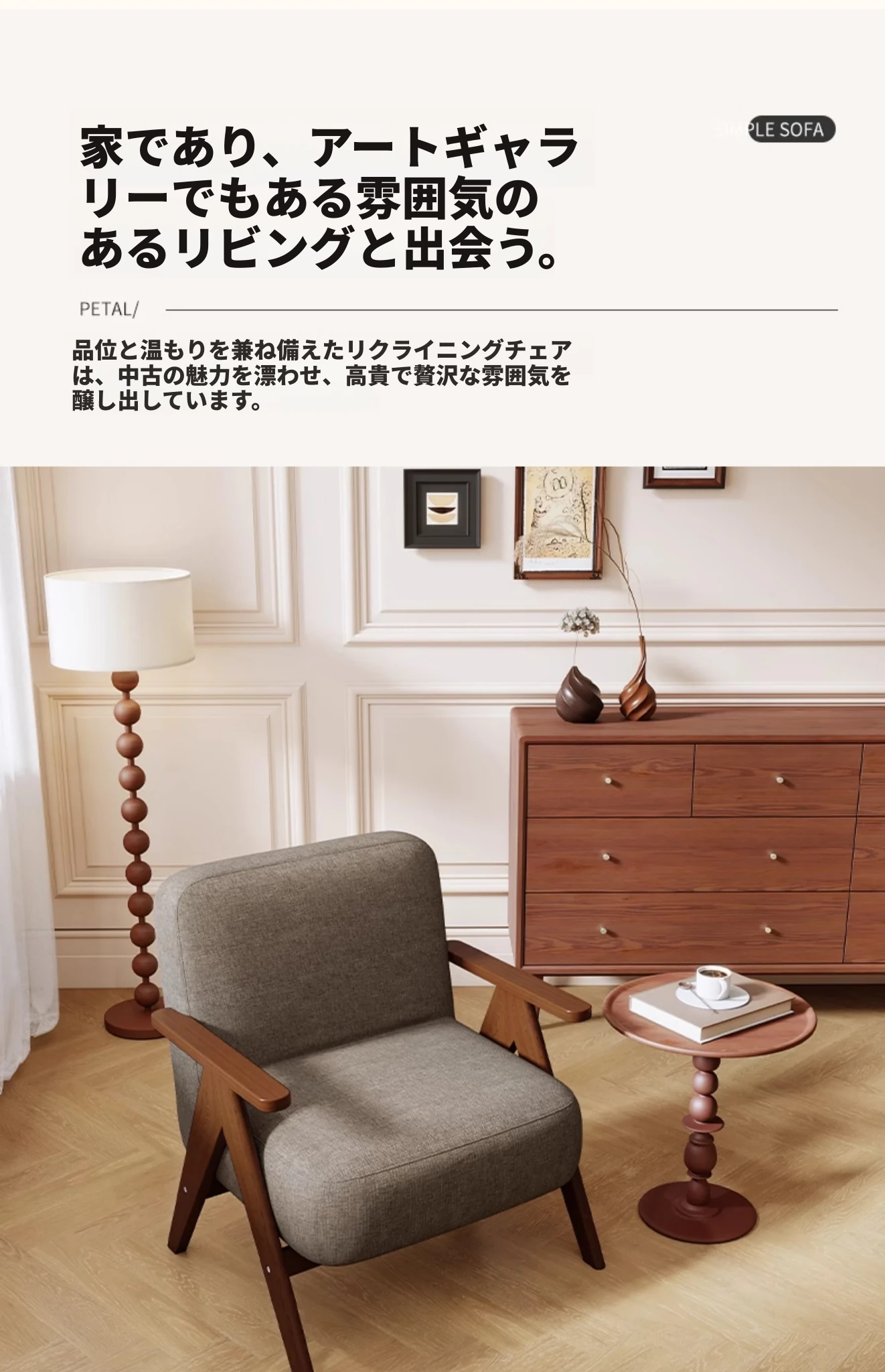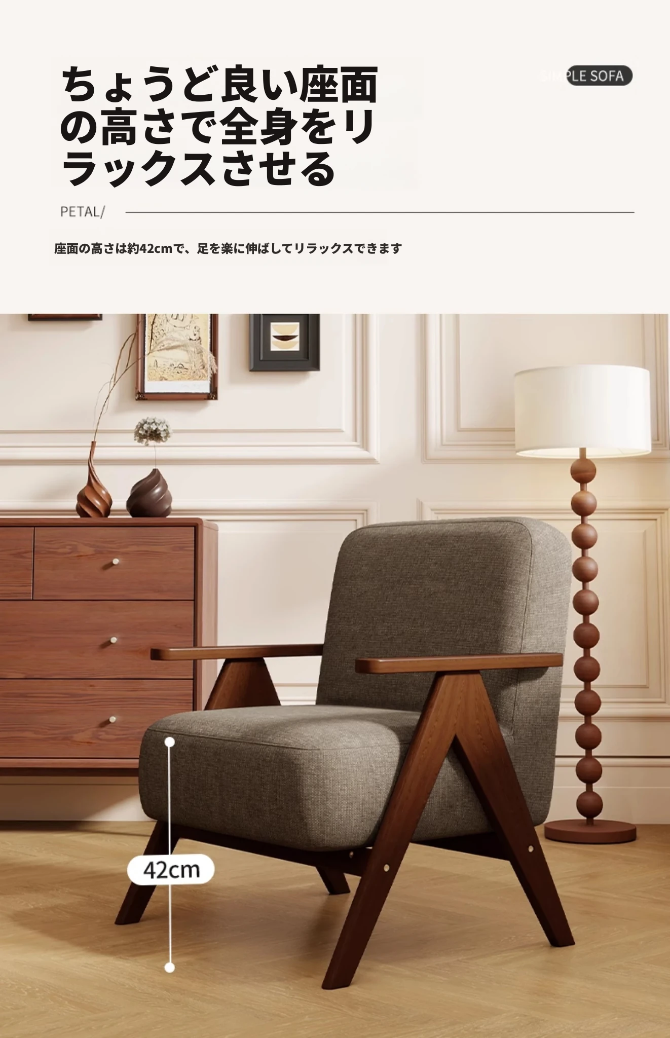 一人用ヴィンテージスタイルソファー - 木製のレトロデザイン、リビングやバルコニーに最適!おしゃれなデザイナー作、くつろぎの寝室にもぴったりな小型ソファ。