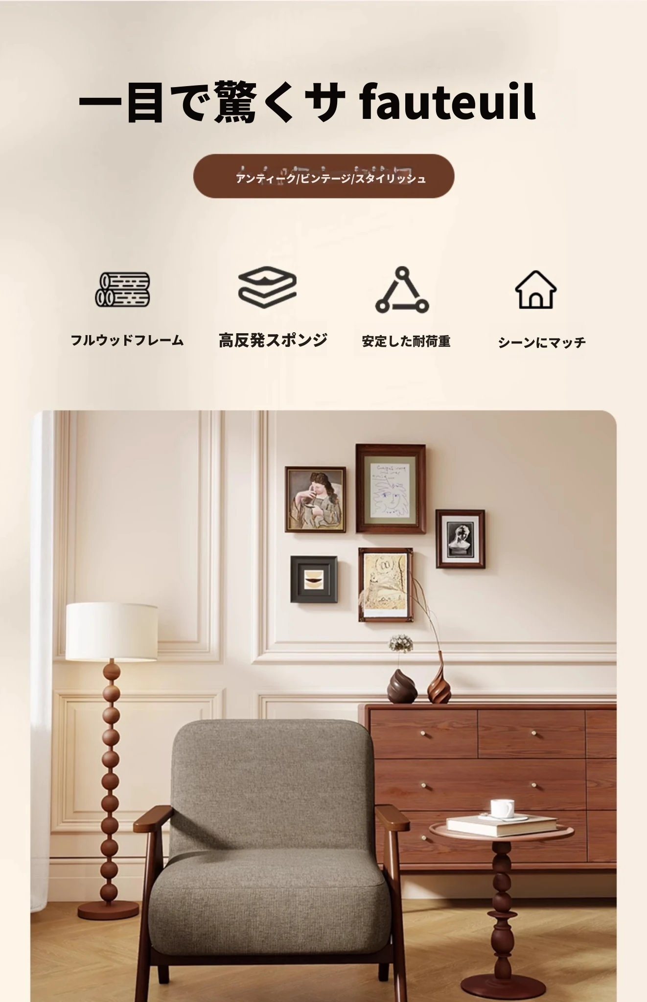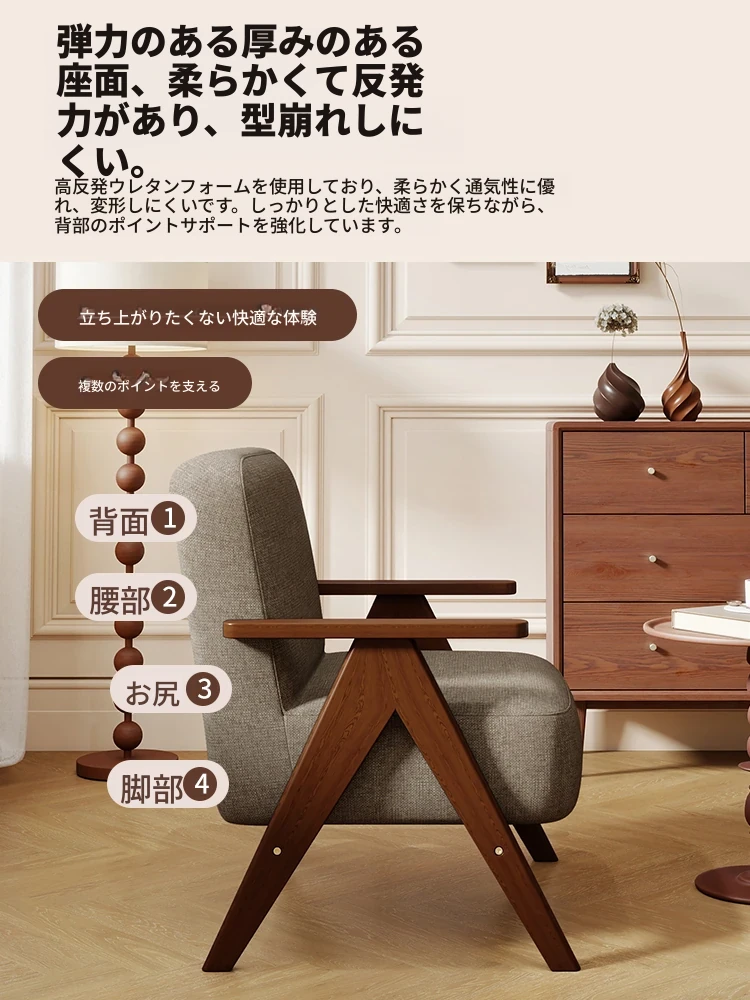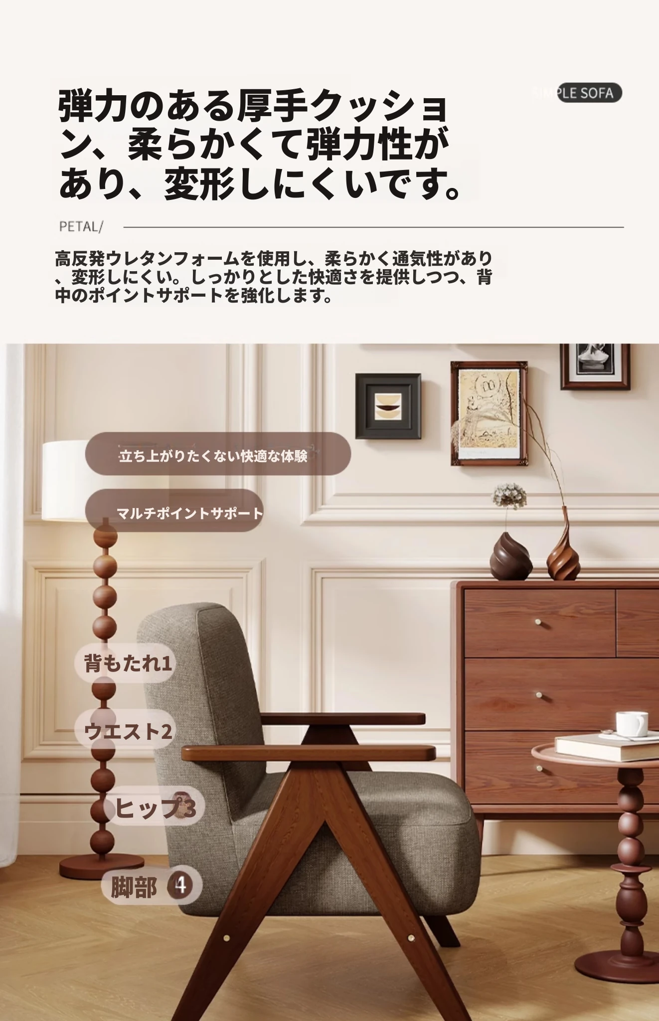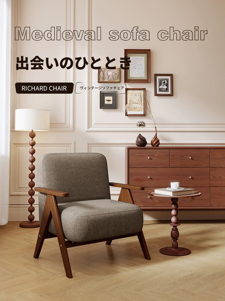 一人用ヴィンテージスタイルソファー - 木製のレトロデザイン、リビングやバルコニーに最適!おしゃれなデザイナー作、くつろぎの寝室にもぴったりな小型ソファ。