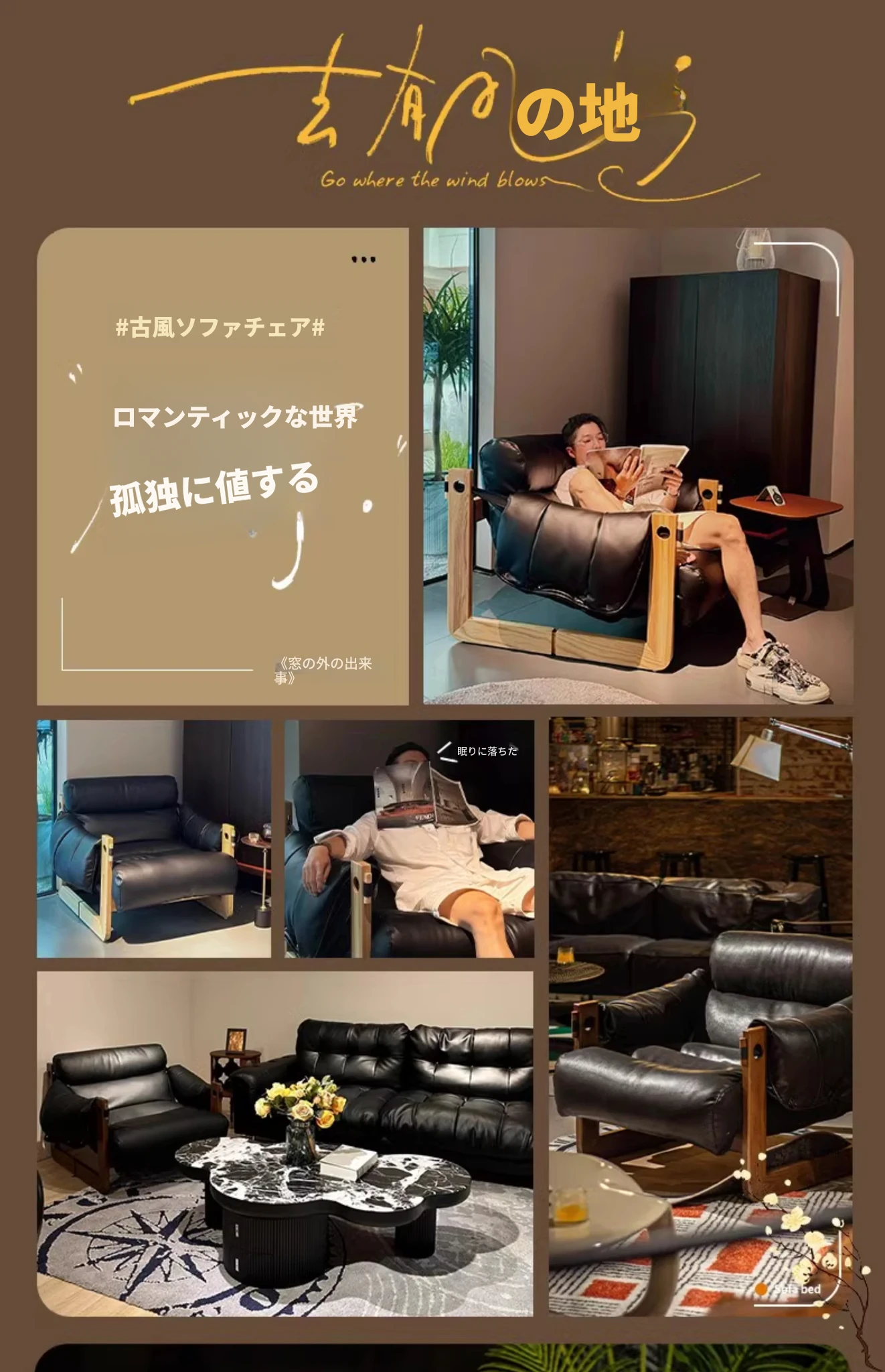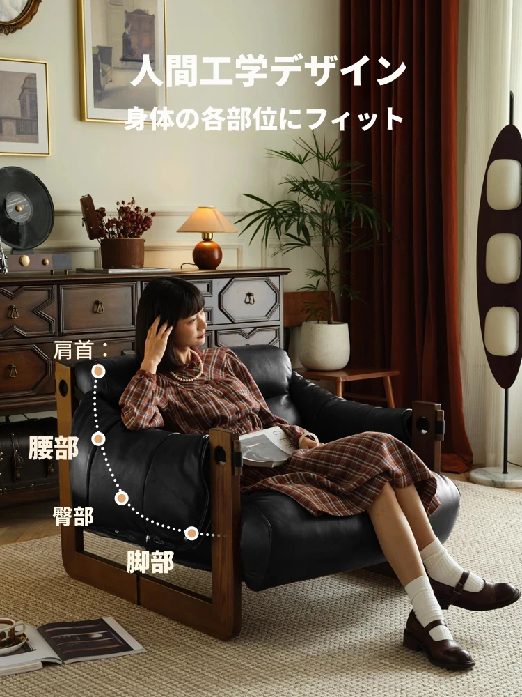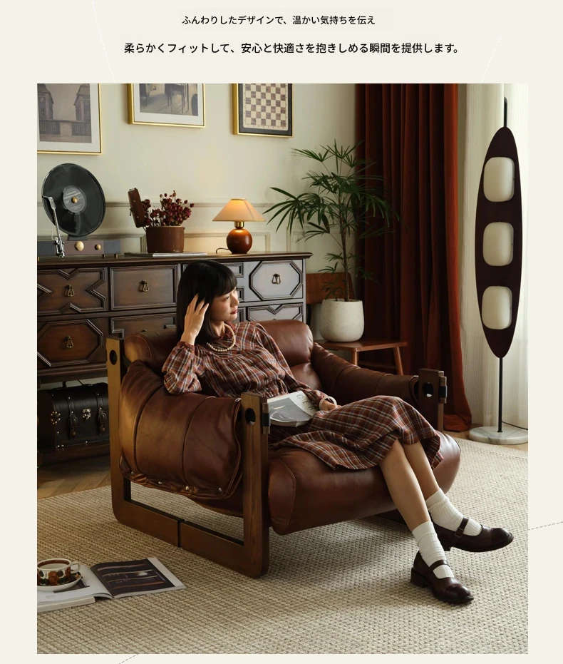 一人用ソファチェア ゼファーアイランドチェア 中古風レザーソファ 椅子 リビングにぴったりなレトロなリラックスチェア 木製ヴィンテージ ラウンジチェア